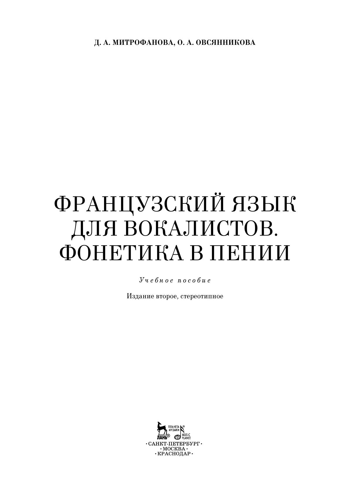 Книга может быть полезна как людям, владеющим основами французского произношения, так и приступающим к исполнению на французском языке впервые. Может быть использована как самоучитель.