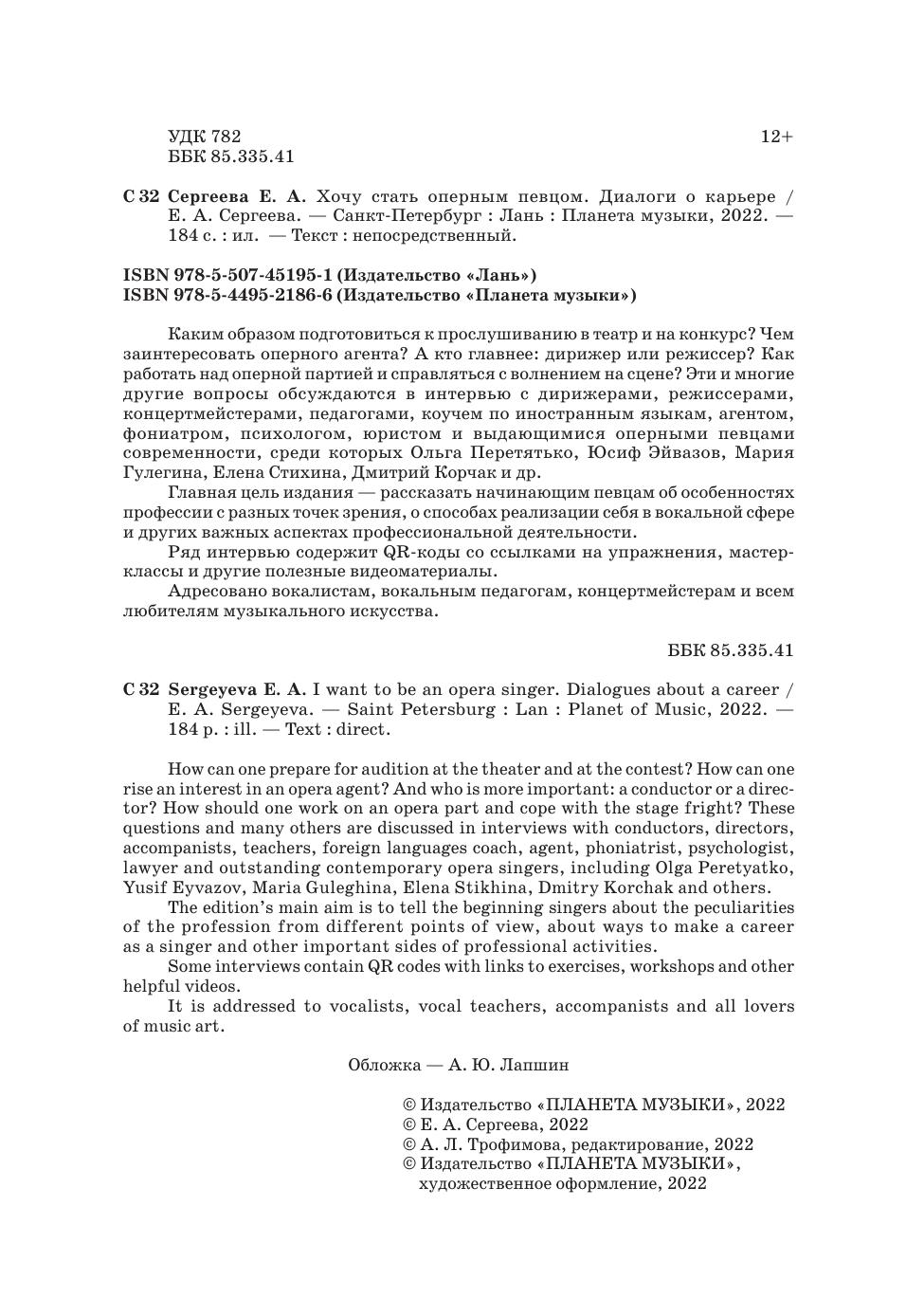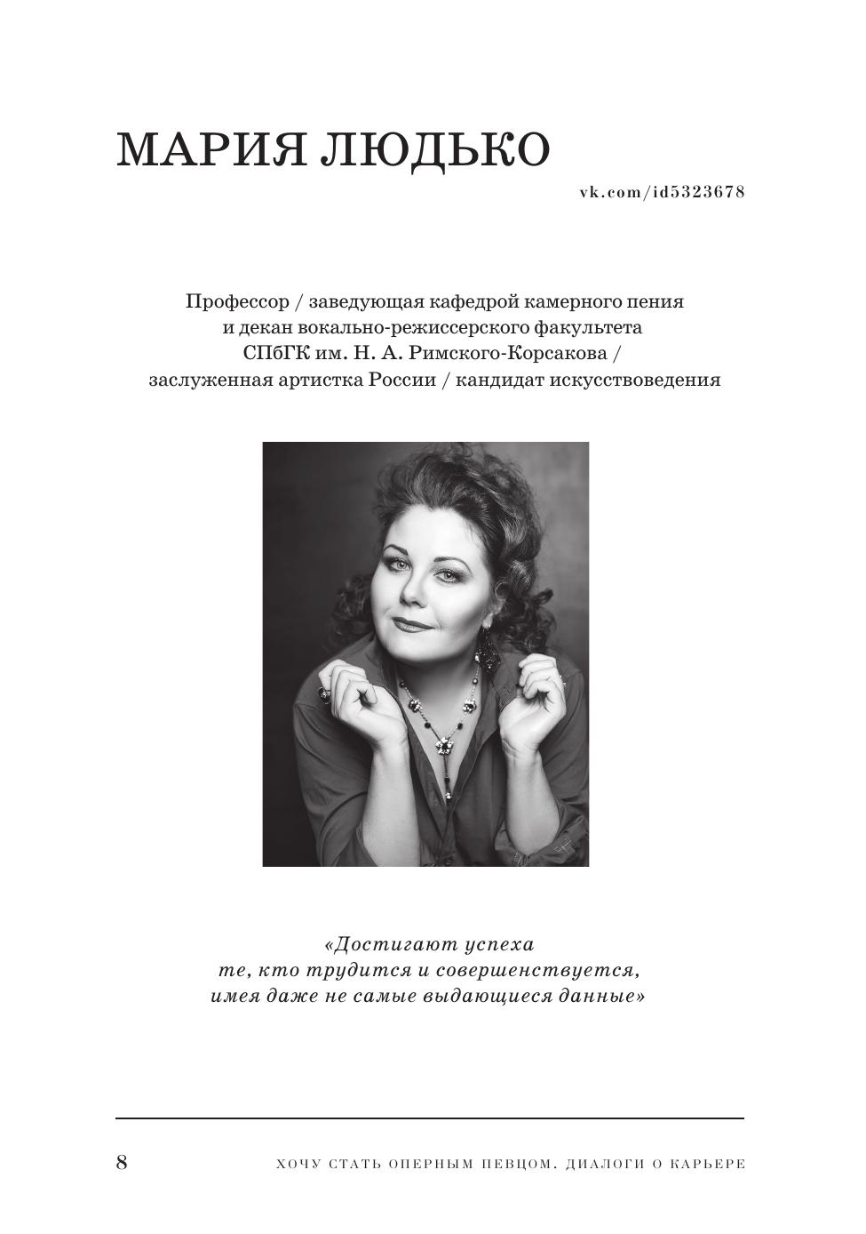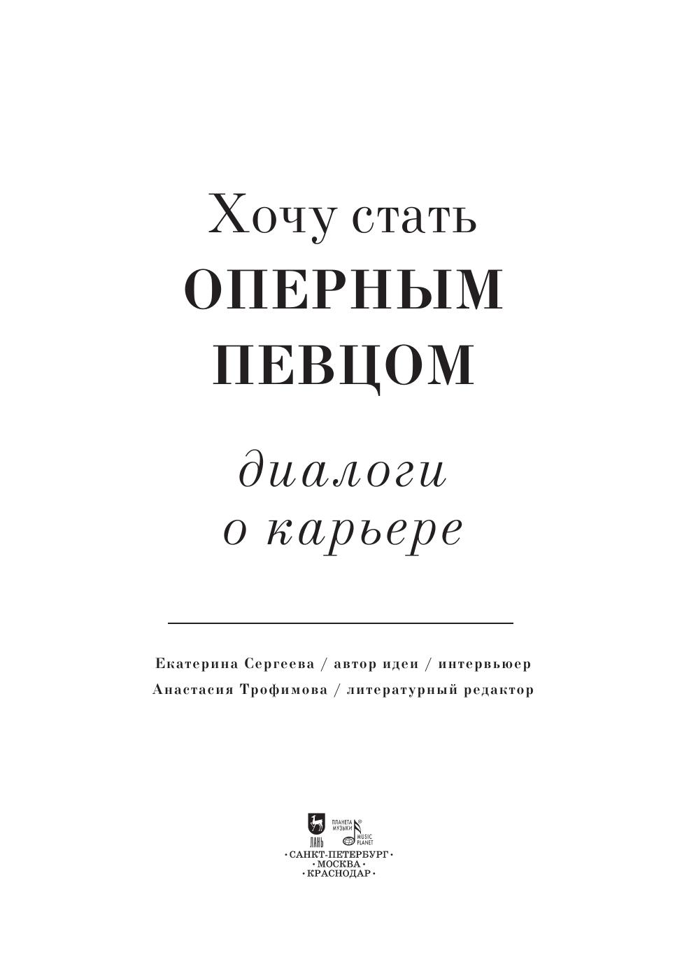 Каким образом подготовиться к прослушиванию в театр и на конкурс? Чем заинтересовать оперного агента? А кто главнее: дирижер или режиссер? Как работать над оперной партией и справляться с волнением на сцене? Эти и многие другие вопросы обсуждаются в интервью с дирижерами, режиссерами, концертмейстерами, педагогами, коучем по иностранным языкам, агентом, фониатром, психологом, юристом и выдающимися оперными певцами современности, среди которых Ольга Перетятько, Юсиф Эйвазов, Мария Гулегина, Елена Стихина, Дмитрий Корчак и др.