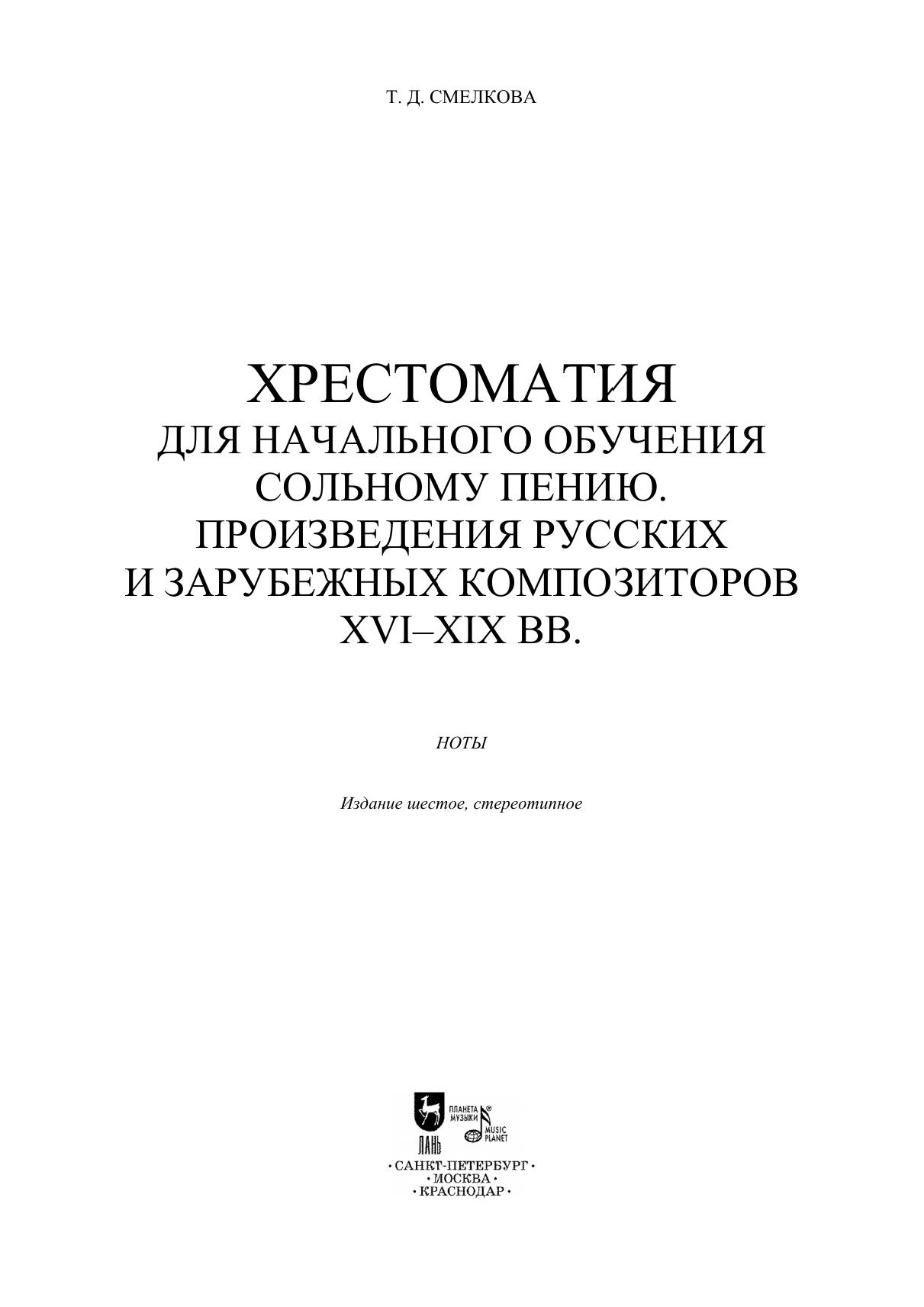 Хрестоматия для начального обучения сольному пению. Произведения русских и зарубежных композиторов XVI–XIX вв