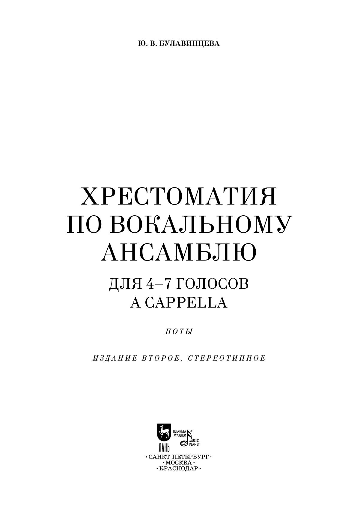 Хрестоматия по вокальному ансамблю. Для 4–7 голосов a cappella