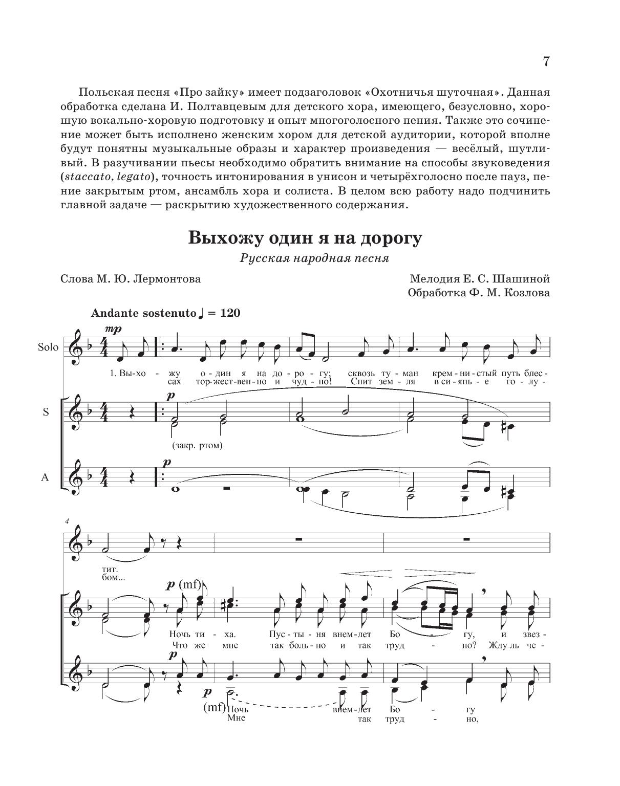 Музыкальный материал в «Хрестоматии» представлен произведениями различной степени сложности и объединен в два раздела: «Произведения a cappella для женского хора c солистом» и «Произведения a cappella для смешанного хора с солистом».