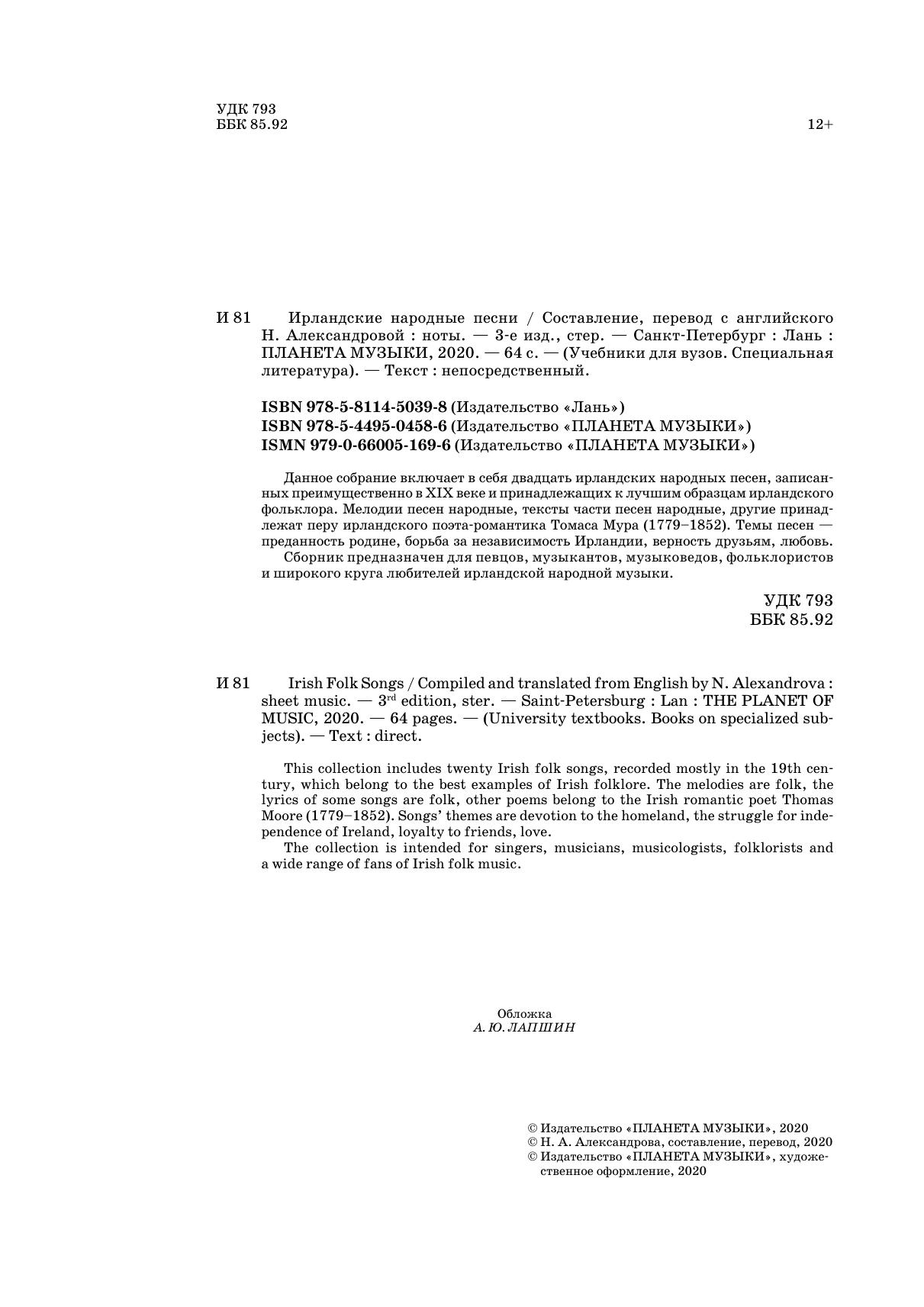 Сборник предназначен для певцов, музыкантов, музыковедов, фольклористов и широкого круга любителей ирландской народной музыки.