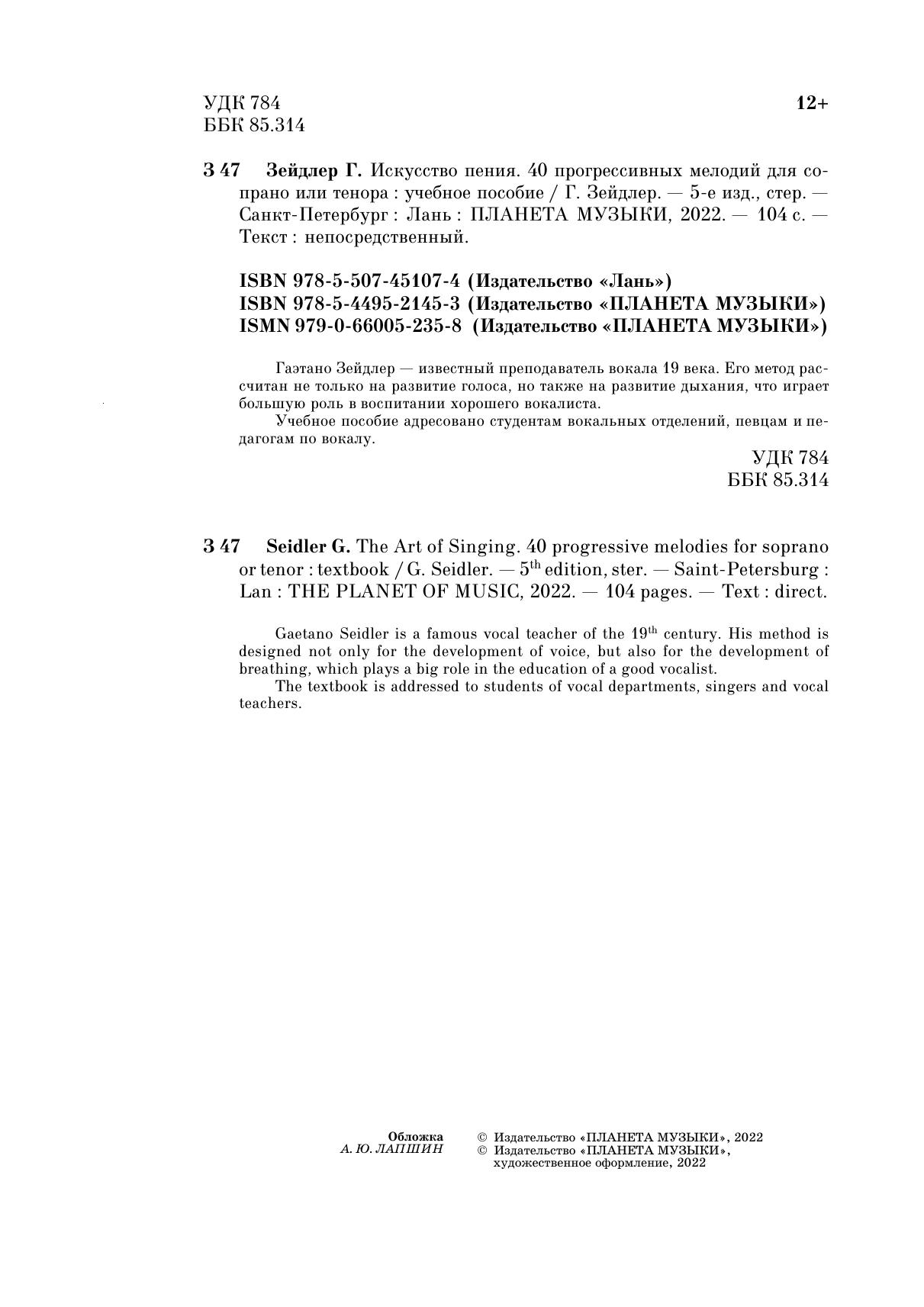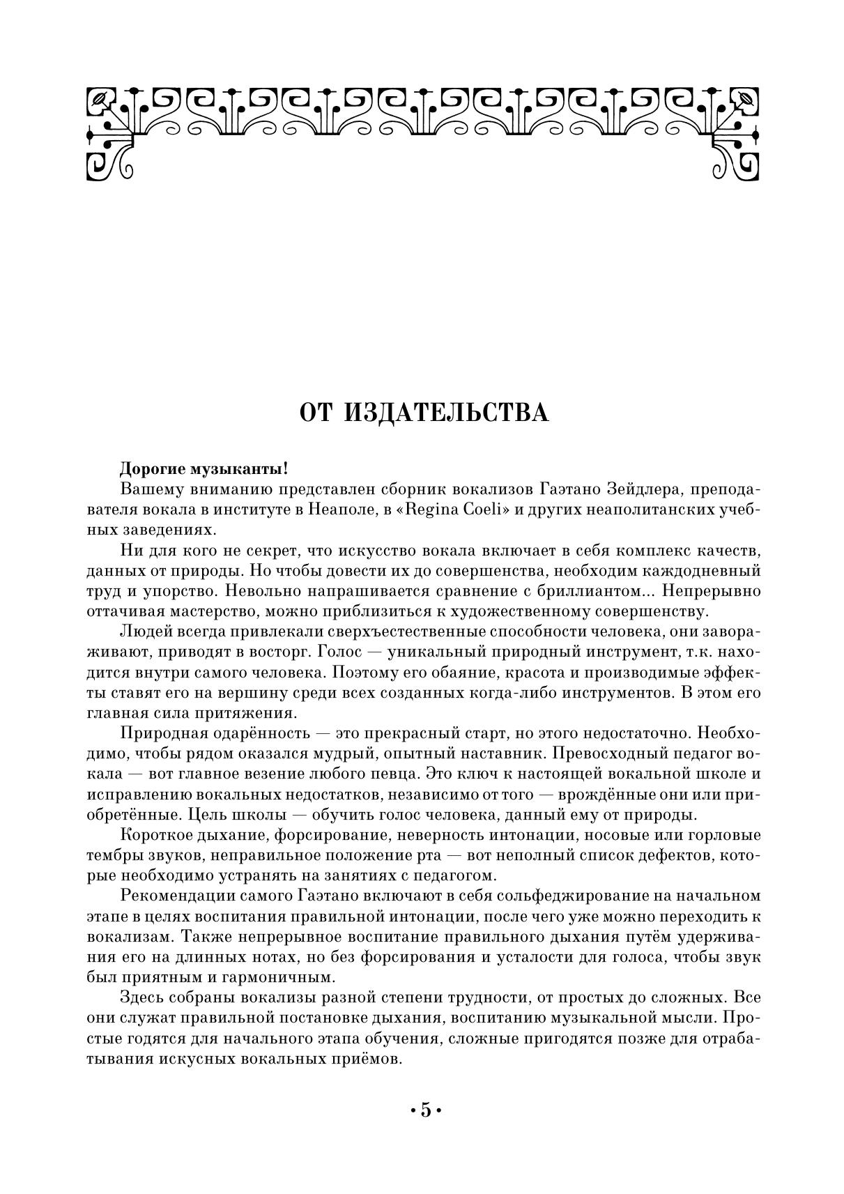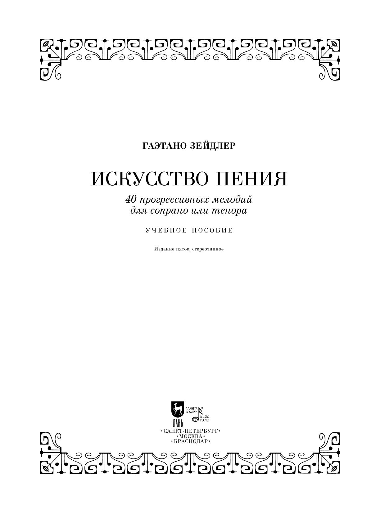 Гаэтано Зейдлер – известный преподаватель вокала 19 века. Его метод рассчитан не только на развитие голоса, но также на развитие дыхания, что играет большую роль в воспитании хорошего вокалиста. Учебное пособие адресовано студентам вокальных отделений, певцам и педагогам по вокалу.