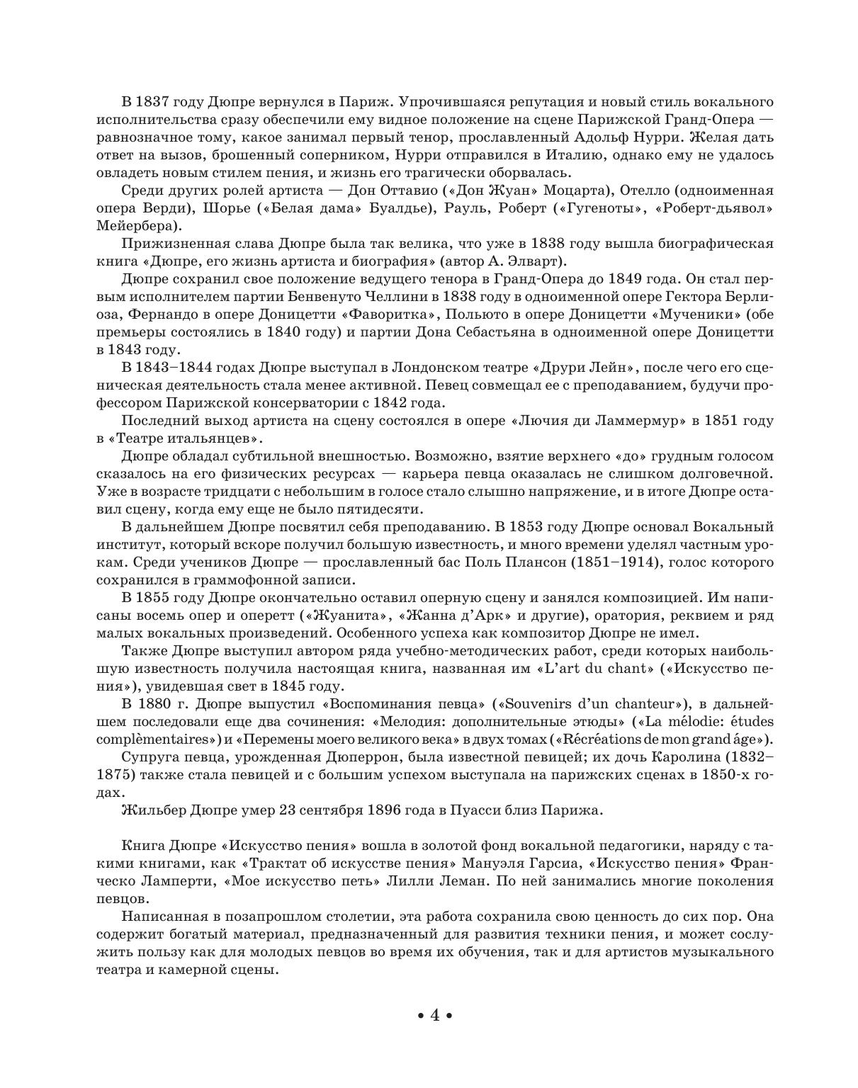 Gilbert-Louis Duprez (1806–1896) was an outstanding French opera singer (tenor) and a teacher, a Professor of Paris Music Academy and the founder of Vocal institute. The book by Duprez “The art of singing” (1845) was one of the most respected works in the sphere of vocal pedagogy. It contains exercises and vocalizations, intended for voice training and the development of all types of singing techniques. The first part of the book is devoted to wide, cantilena singing. The second part is devoted to bravura, moving singing. The given edition is the first uncut in Russian language. The book will be a valuable study guide for the students of vocal faculties of music colleges and academies, young singers, actors of opera houses and chamber stages, teachers.