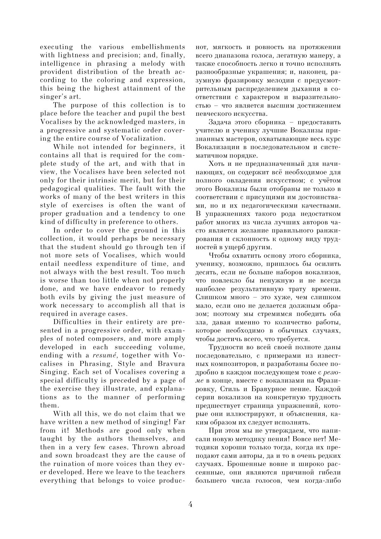The collections of vocalises for tenor in three books have been compiled by the Italian pianist, organist, conductor, composer and music editor Eduardo Marzo (1852–1929). The second book contains 24 vocalises from the collections of Savinelli, Rubini, Crescentini, and others.