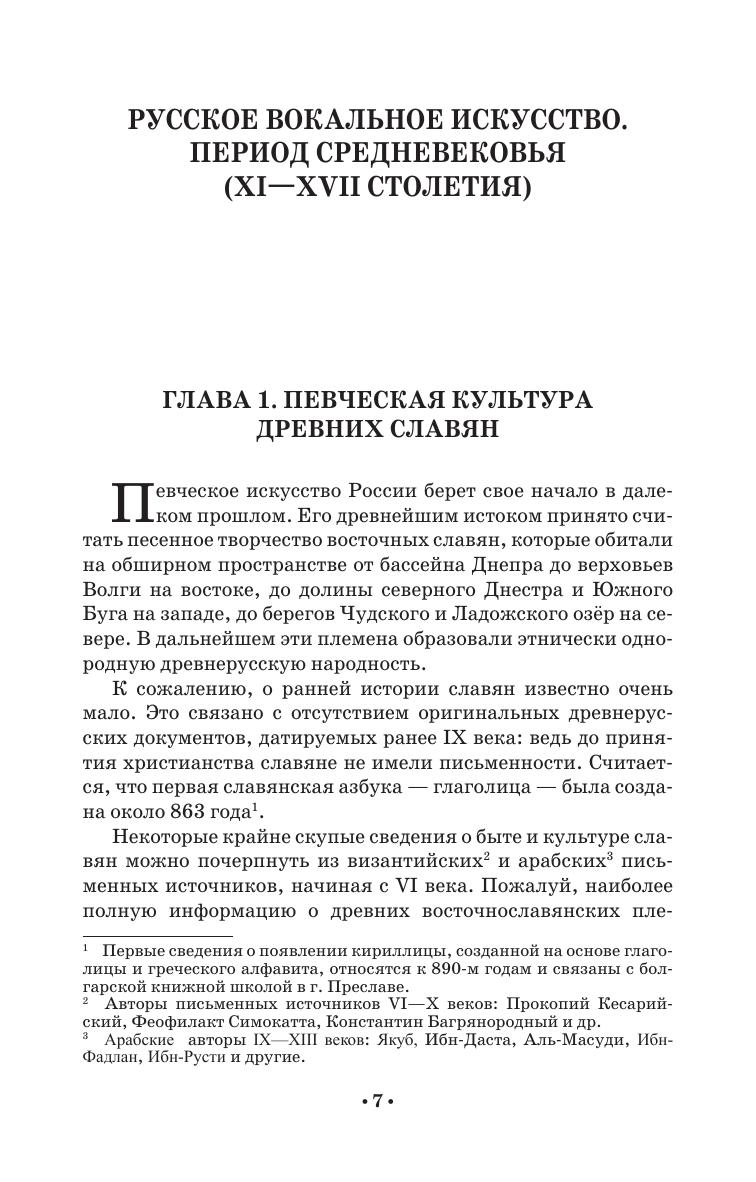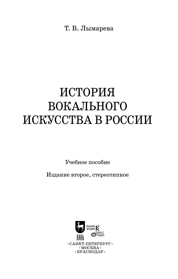 This textbook is perhaps the first book on the history of art of singing in Russia, covering the period from the Middle Ages to the beginning of the 20th century. It contains historical information, observations of stylistic processes in vocal performing art and vocal methodology, as well as biographies of the most famous singers.