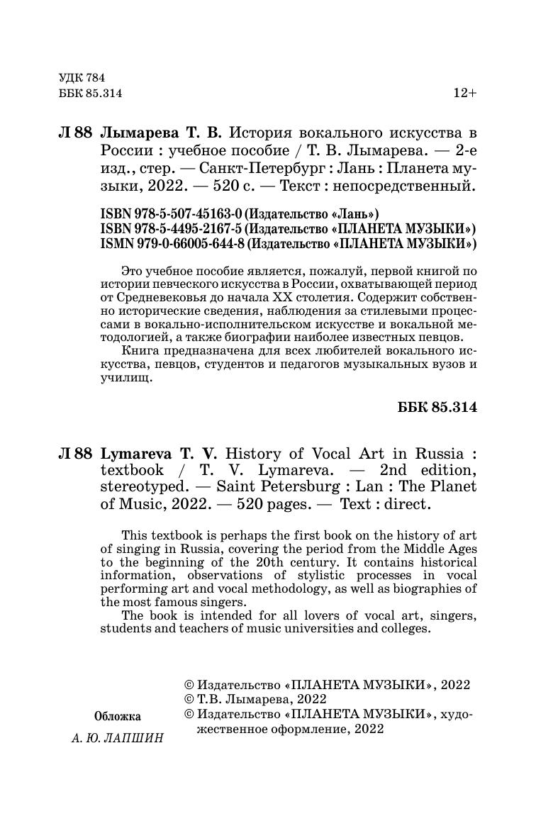 The book is intended for all lovers of vocal art, singers, students and teachers of music universities and colleges.