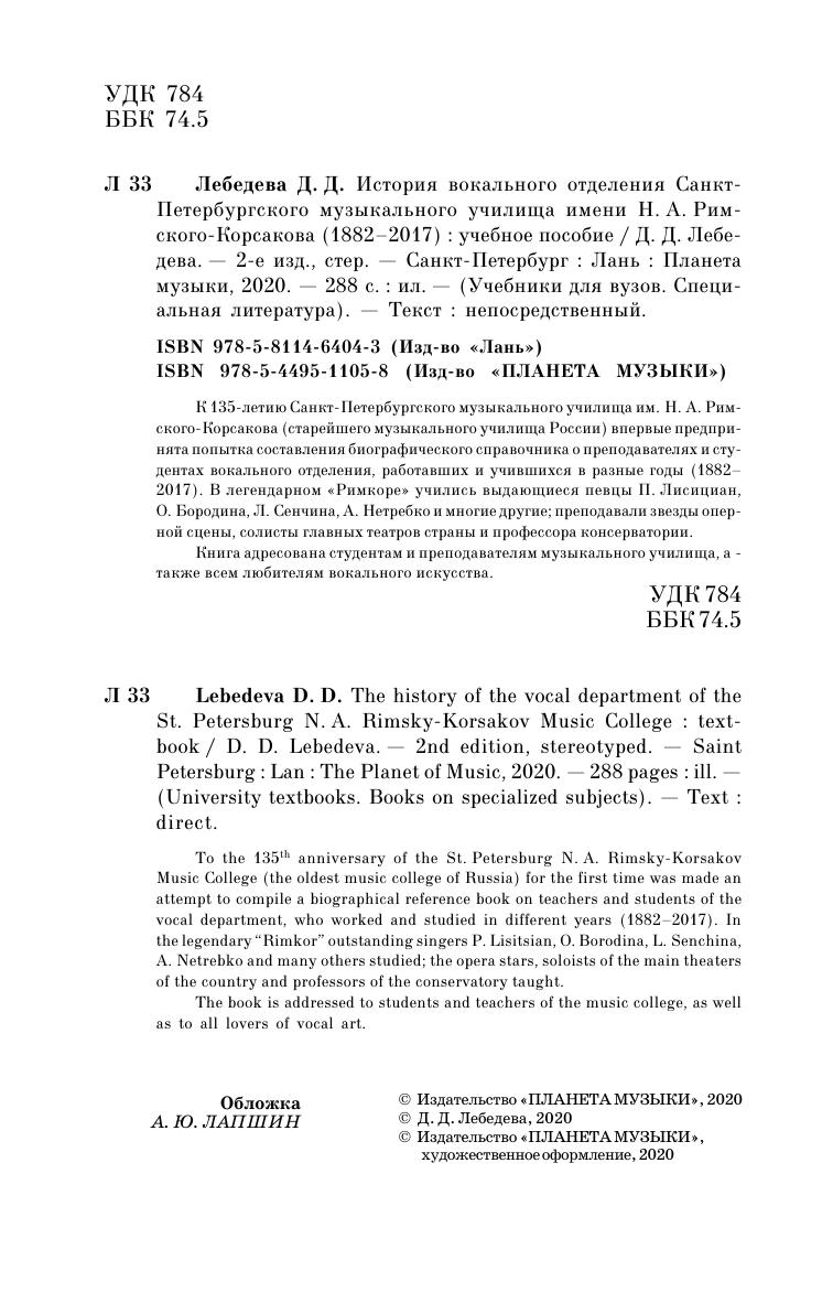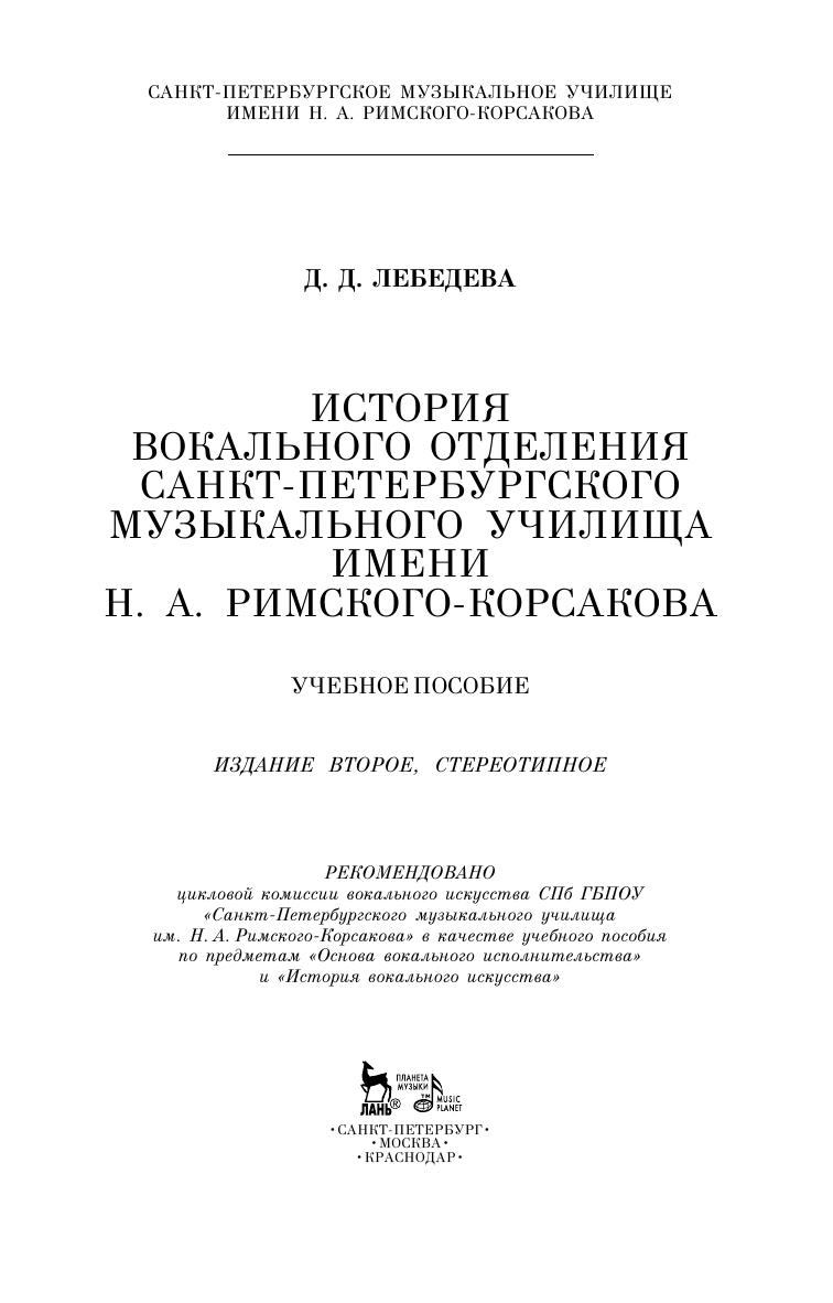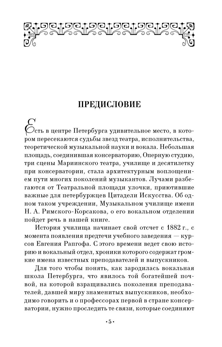 К 135-летию Санкт-Петербургского музыкального училища им. Н.А. Римского-Корсакова (старейшего музыкального училища России) впервые предпринята попытка составления биографического справочника о преподавателях и студентах вокального отделения, работавших и учившихся в разные годы (1882-2017). В легендарном «Римкоре» учились выдающиеся певцы П. Лисициан, О. Бородина, Л. Сенчина, А. Нетребко и многие другие; преподавали звезды оперной сцены, солисты главных театров страны и профессора консерватории.