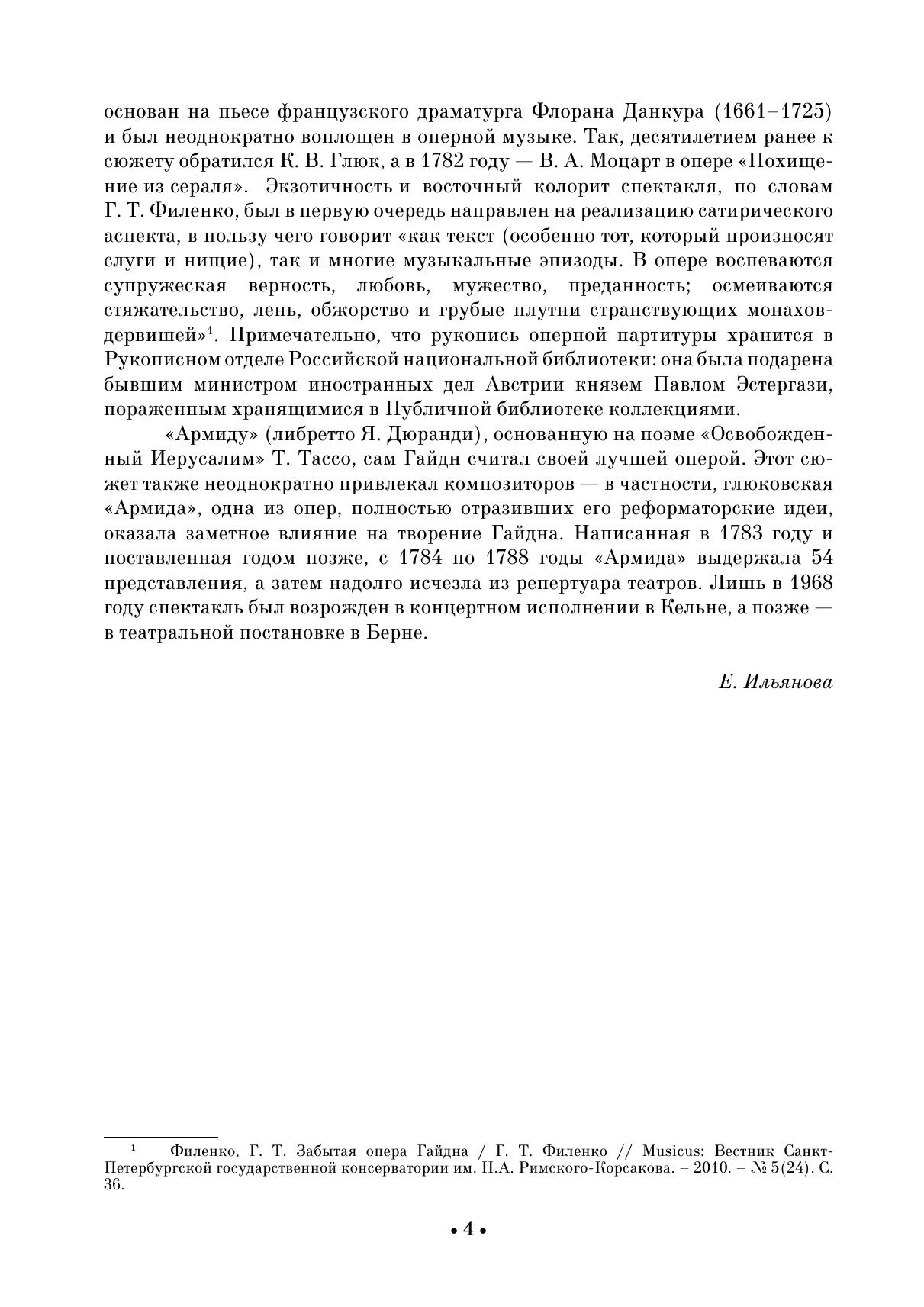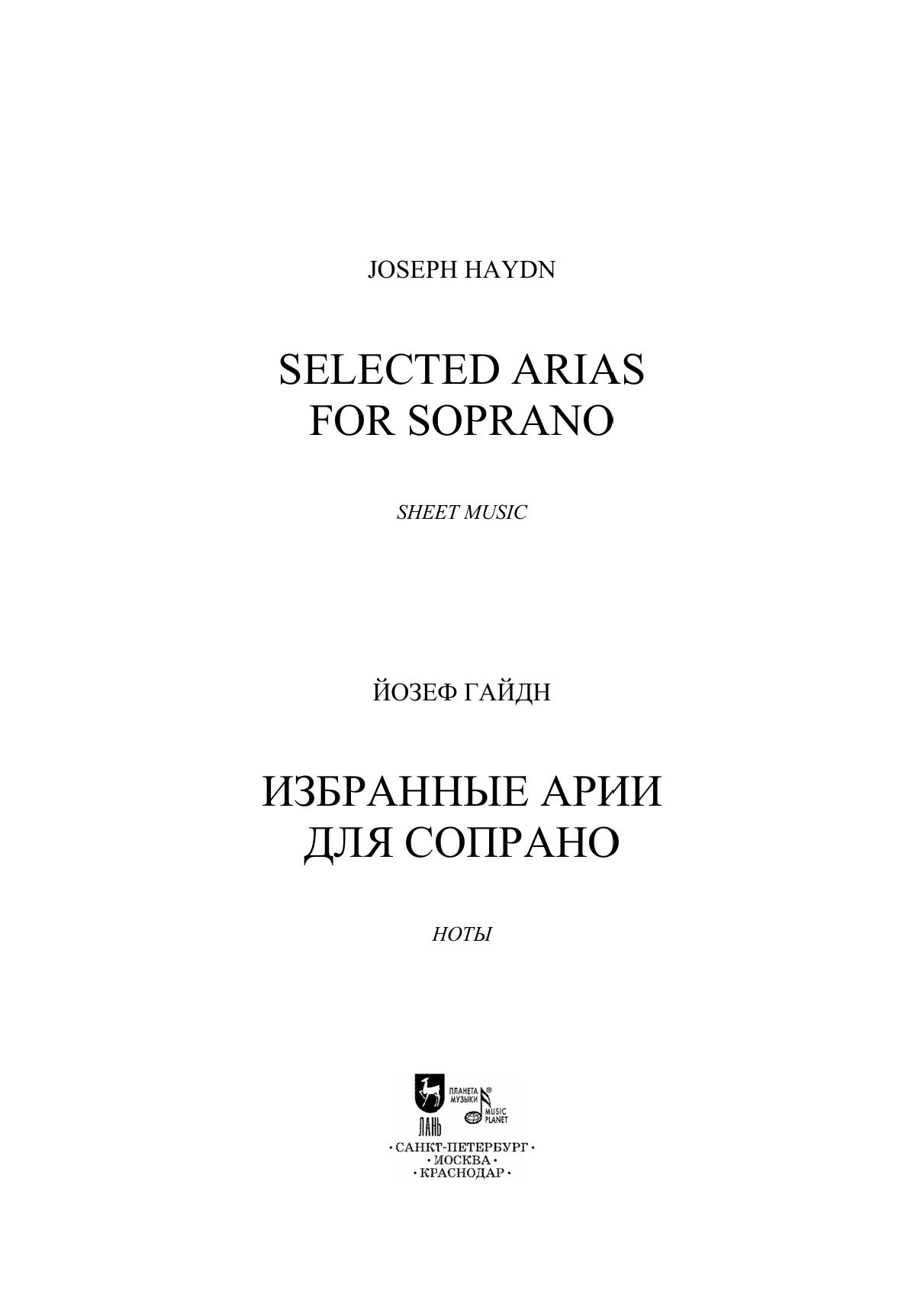 Й. Гайдн (1732-1809) вошел в историю музыки как автор инструментальной музыки и в первую очередь — как один из создателей классической симфонии и квартета. Однако в наследии композитора значительную долю составляют вокальные жанры — оратории, кантаты, мессы, арии, дуэты и др. Гайдн также написал более двадцати опер. В настоящий сборник вошли избранные арии для сопрано из опер «Армида», «Неожиданная встреча», «Обманутая неверность», из оратории «Времена года», а также из кантаты «Ариадна на Наксосе». Издание адресовано студентам музыкальных училищ и вузов, профессиональным вокалистам. J. Haydn (1732–1809) entered the music history as the author of instrumental music and, above all, as one of the creators of the classical symphony and quartet. However, a significant part of the composer’s heritage is represented by vocal genres — oratorios, cantatas, masses, arias, duets, etc. Haydn also wrote more than twenty operas. This collection includes selected arias for soprano from the operas “Armida”, “L’inconto improvviso”, “L’infidelità delusa”, from the oratorio “Die Jahreszeiten” (“The Seasons”), as well as from the cantata “Arianna a Naxos”. The edition is addressed to students of music colleges and higher schools, professional vocalists.