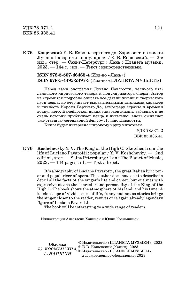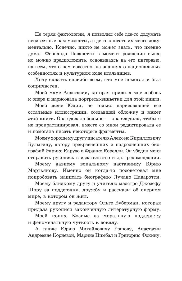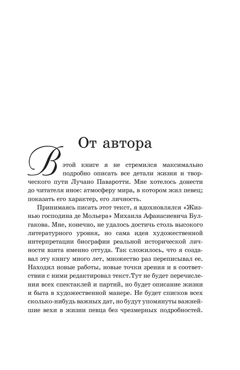 Перед вами биография Лучано Паваротти, великого итальянского лирического тенора и популяризатора оперы. Автор не стремится подробно описать все детали жизни и творческого пути певца, но очерчивает выразительными штрихами характер и личность Короля Верхнего До, атмосферу страны и времени вокруг него. Калейдоскоп ярких эпизодов жизни, забавных и не очень историй приближает певца к читателю, вновь оживляет уже ставшую легендарной фигуру Лучано Паваротти.