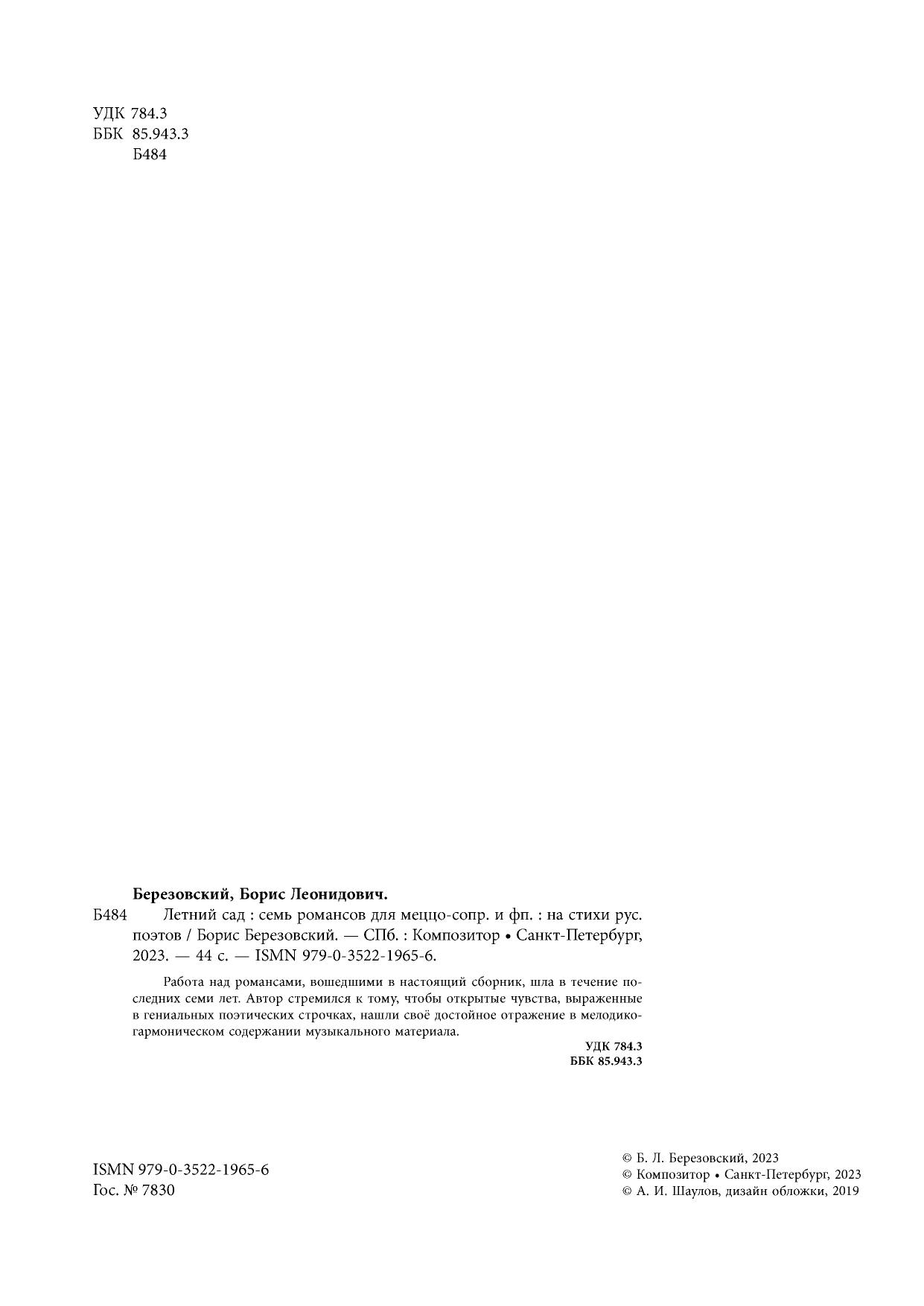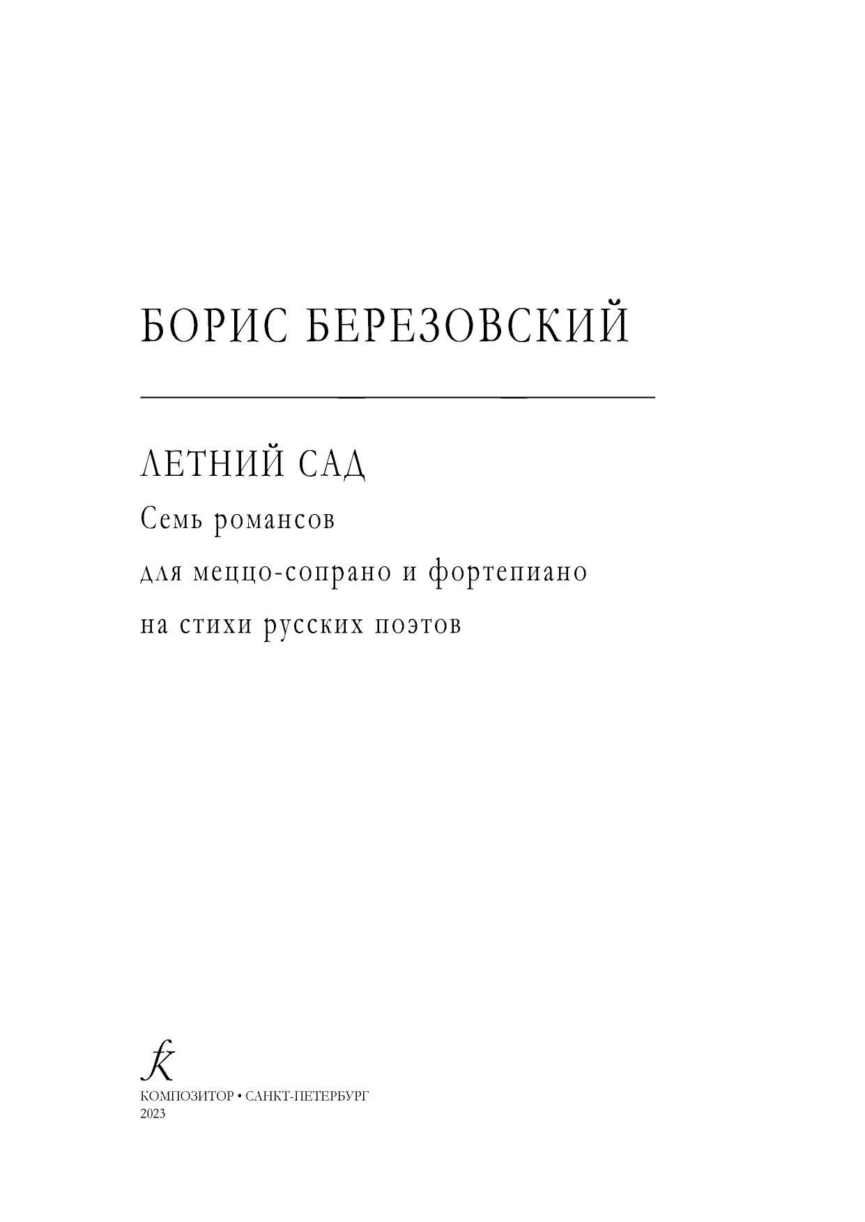 Летний сад. Восемь романсов для меццо-сопрано и фортепиано на стихи русских поэтов