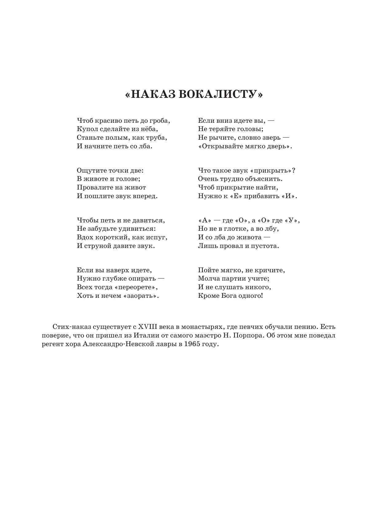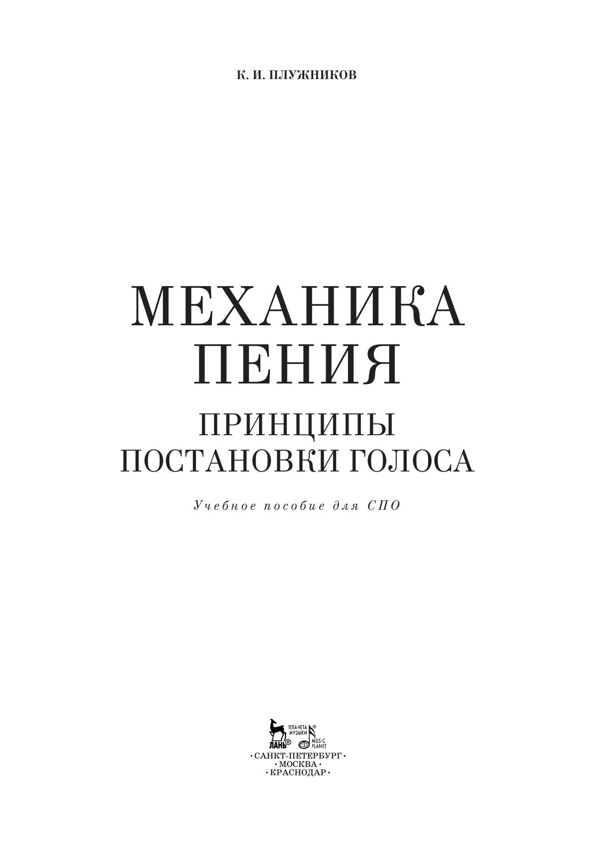 Книга известного петербургского певца и оперного режиссера, н.а. России, профессора К. И. Плужникова научно освещает основные вопросы вокальной технологии, которая способствует длительному сохранению певческого голоса. И творческое долголетие автора — лучшее тому доказательство.