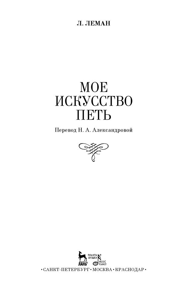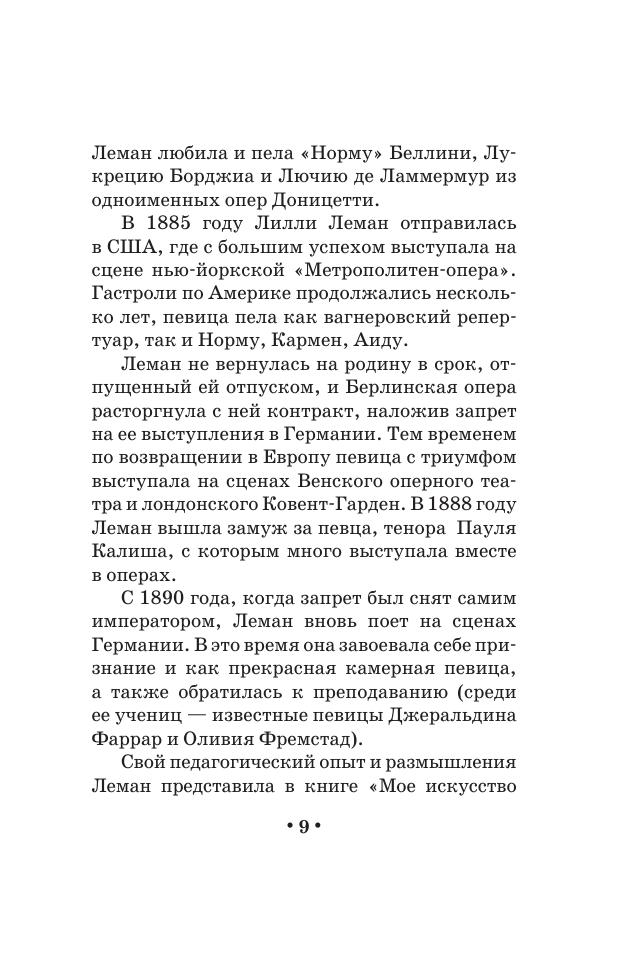 Lilli Lehmann (1848–1929) was a German operatic singer (soprano), a voice teacher and an outstanding representative of German school of singing. In the book «My art of singing» («Meine Gesangkunst»), first published in Berlin in 1902, the singer reveals her experience and reflections. The book was the main guide for singers for a long time. Lehmann discloses secrets of professional mastery, tells about nuances of vocal techniques: singer's physiology, breathing, sensations, timbres, registers, voice's equalization, pronunciation, expression, ways to keep voice's strength and elasticity. There are also illustrations of physical processes of singing. The book will be interesting for operatic and chamber singers, vocal teachers, students of music schools.