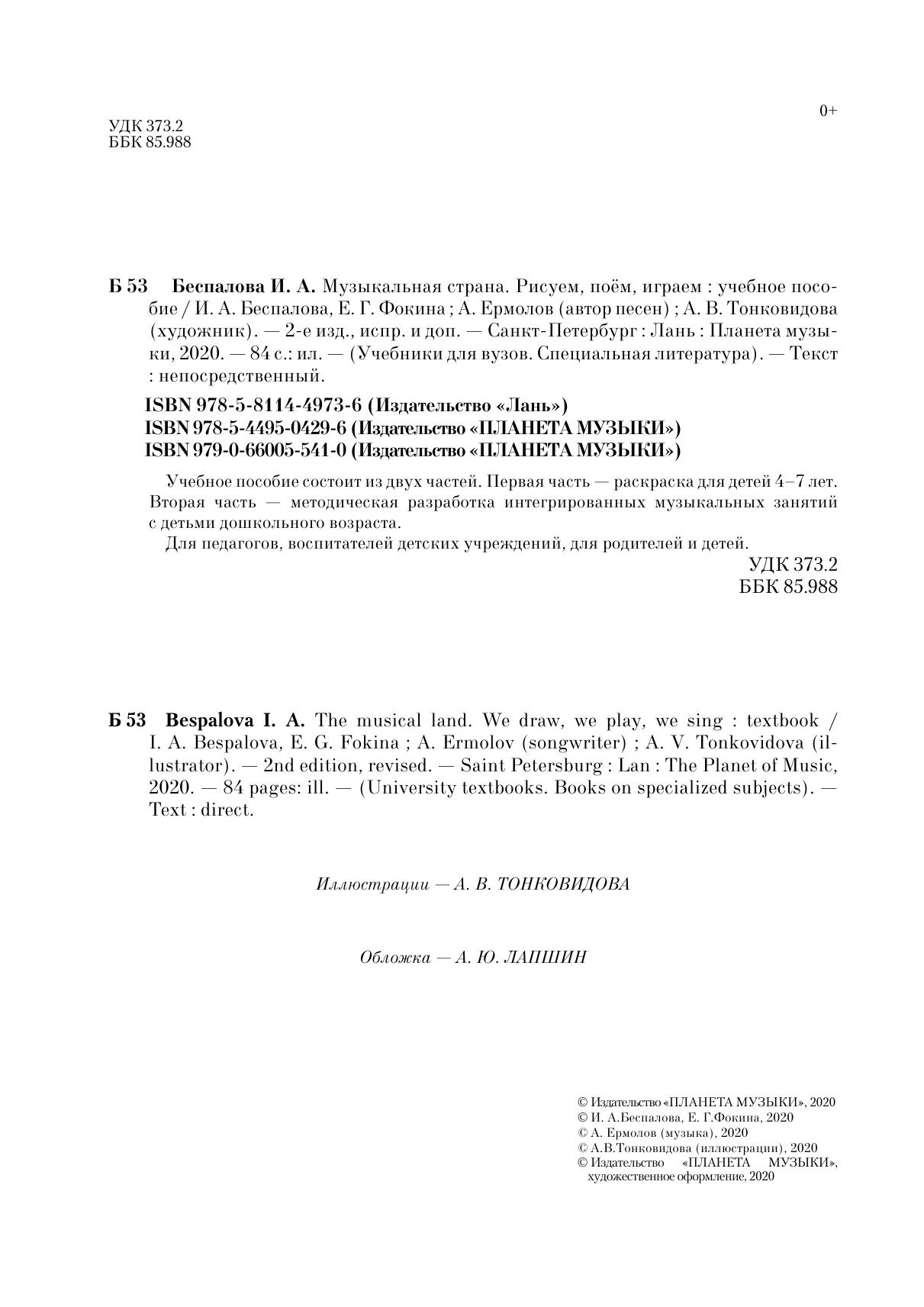 Учебное пособие состоит из двух частей. Первая часть — раскраска для детей 4–7 лет. Вторая часть — методическая разработка интегрированных музыкальных занятий с детьми дошкольного возраста. Для педагогов, воспитателей детских учреждений, для родителей и детей.