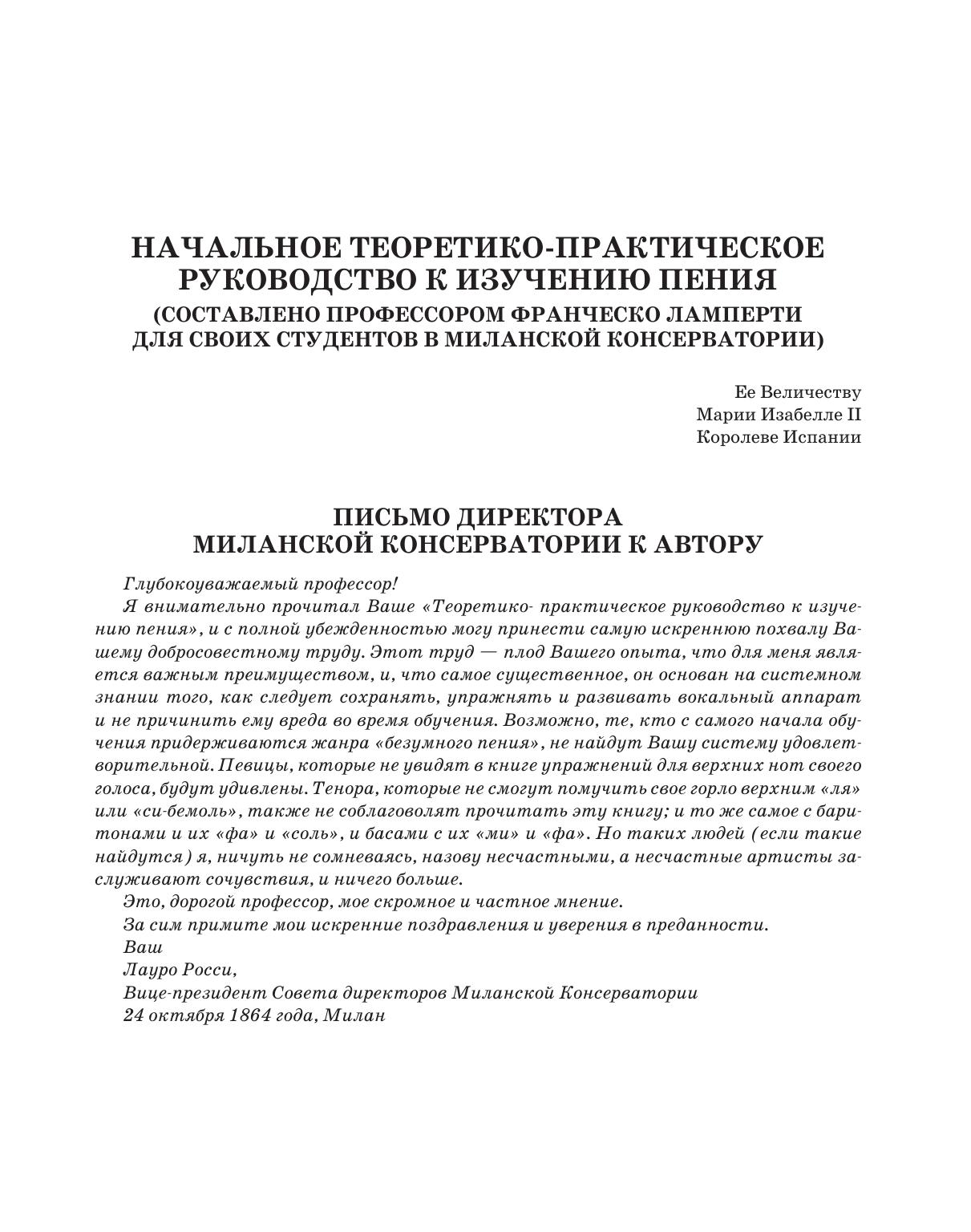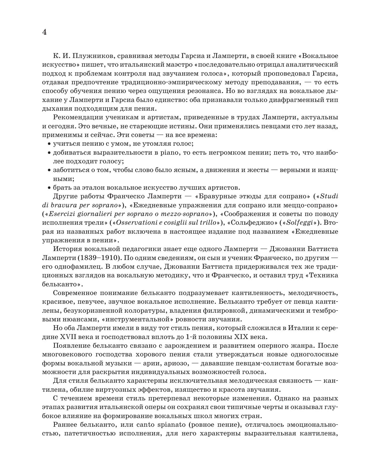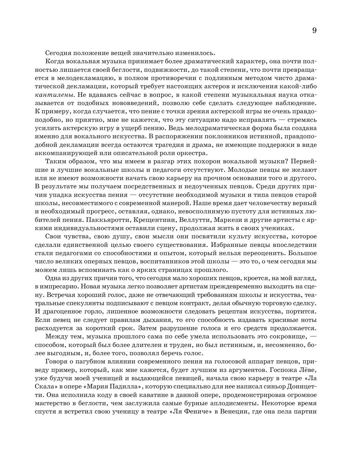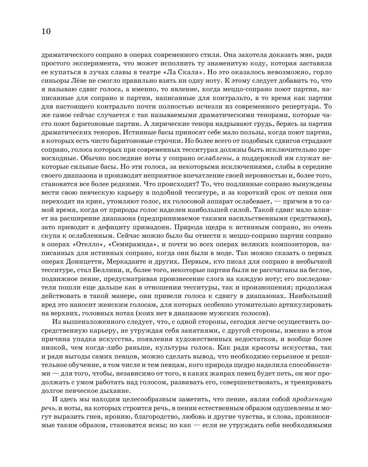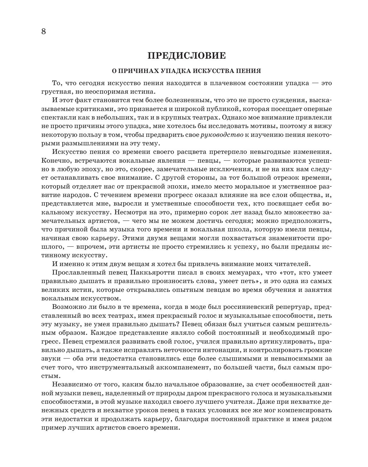 Настоящее издание включает в себя три учебно-методических труда маэстро: «Начальное теоретико-практическое руководство к изучению пения», «Искусство пения по классическим преданиям. Технические правила и советы ученикам и артистам» и «Ежедневные упражнения в пении».