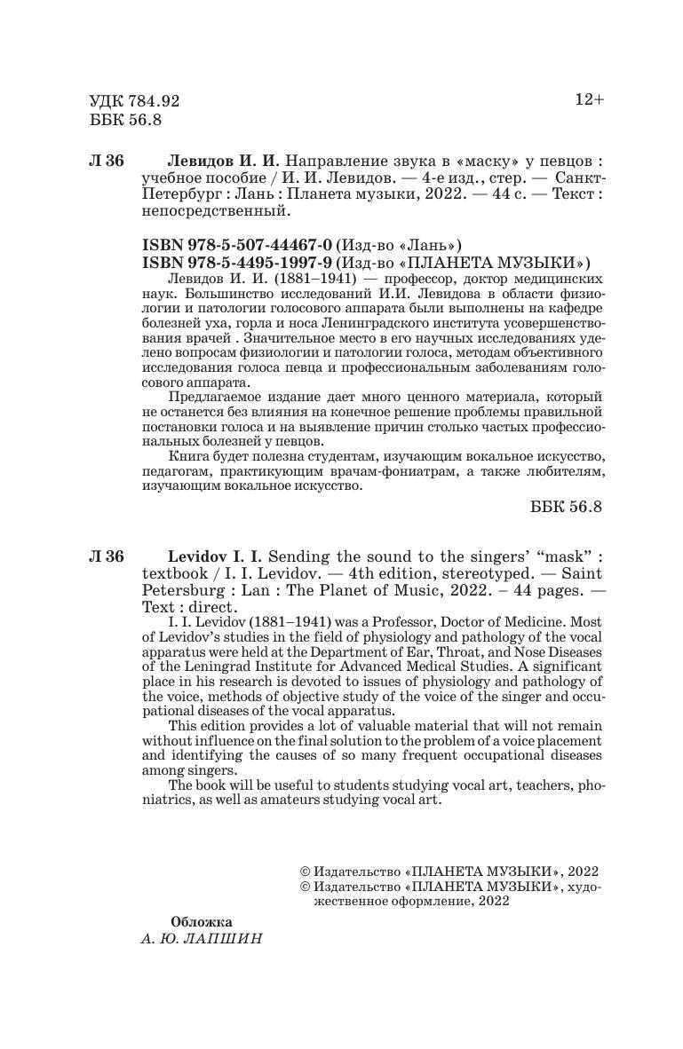 This edition provides a lot of valuable material that will not remain without influence on the final solution to the problem of a voice placement and identifying the causes of so many frequent occupational diseases among singers.