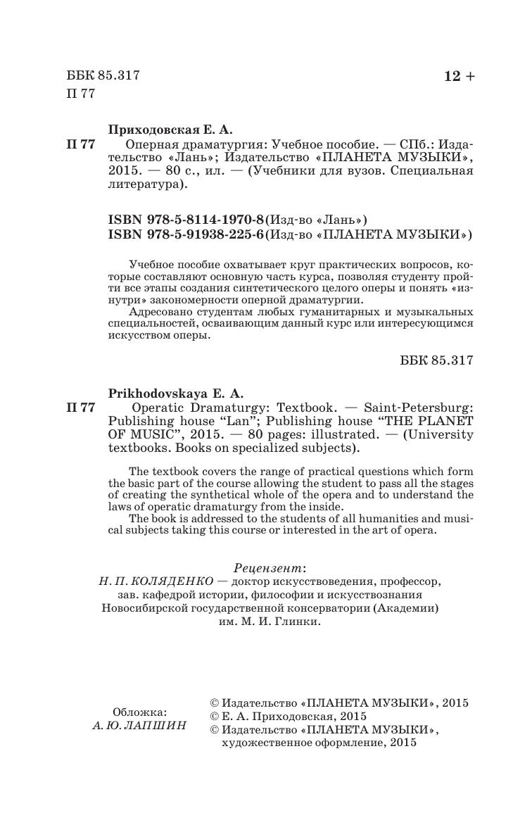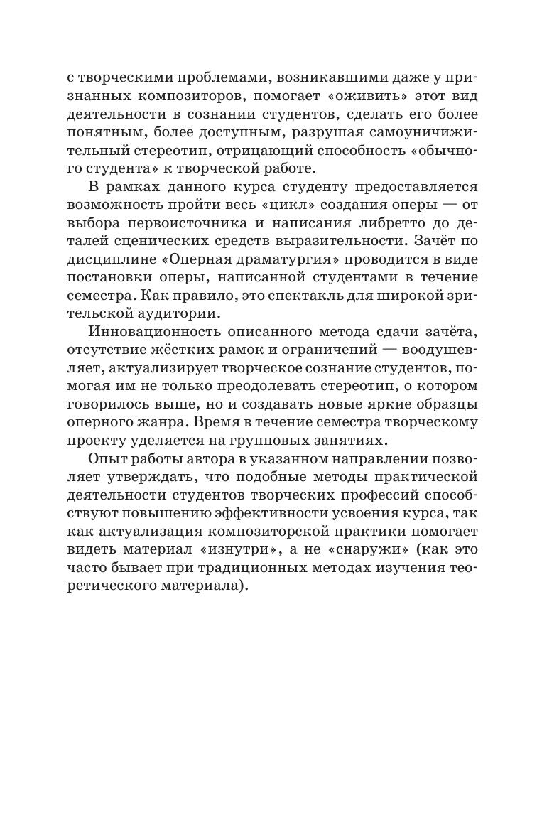 The textbook covers the range of practical questions which form the basic part of the course allowing the student to pass all the stages of creating the synthetical whole of the opera and to understand the laws of operatic dramaturgy from the inside.