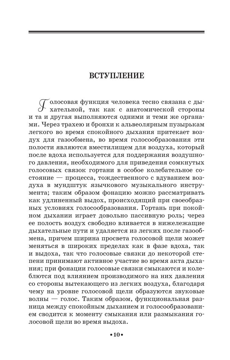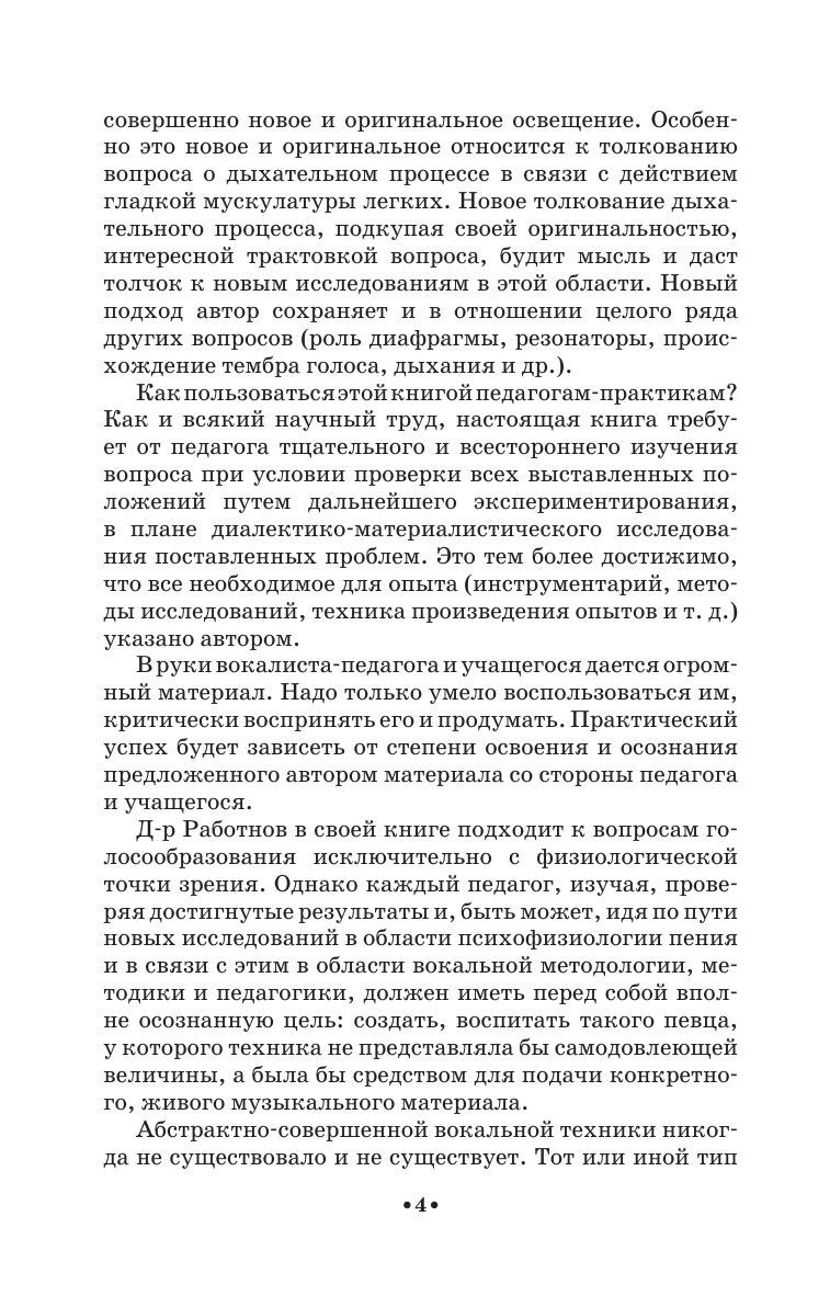 Данное издание представляет собой ценную научно-исследовательскую работу, имеющую большое значение в качестве учебно-педагогического пособия в области вокальной методологии. Автор в своей книге подходит к вопросам голосообразования исключительно с физиологической точки зрения. Однако каждый педагог, изучая, проверяя достигнутые результаты и, быть может, идя по пути новых исследований в области психофизиологии пения и в связи с этим в области вокальной методологии, методики и педагогики, должен иметь перед собой вполне осознанную цель: создать, воспитать такого певца, у которого техника не представляла бы самодовлеющей величины, а была бы средством для подачи конкретного, живого музыкального материала.