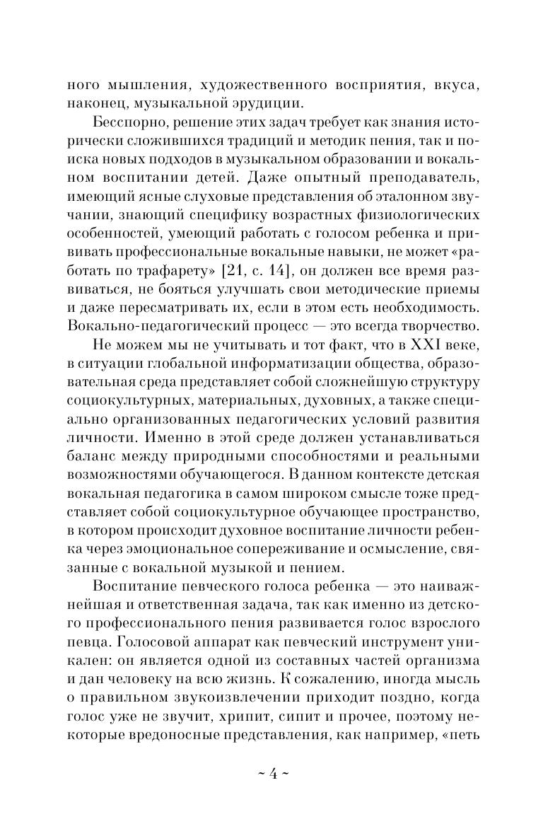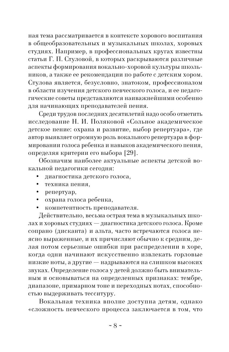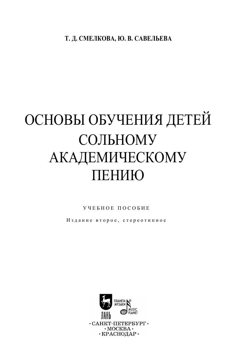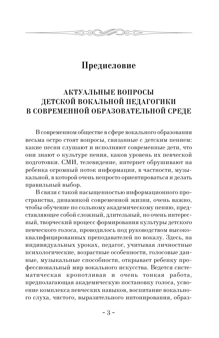 В учебном пособии представлены основные сведения о профессиональном развитии детского певческого голоса, воспитании вокально-исполнительской культуры ребенка в условиях современного музыкального образования. Авторы рассматривают причины целесообразности, принципы и установки обучения детей сольному академическому пению во взаимосвязи с особенностями возрастных периодов. В книге раскрываются методические подходы к формированию у детей техники пения, чистого интонирования, четкой, выразительной дикции, представлен один из важнейших и актуальных вопросов вокальной педагогики – грамотный подбор репертуара по сольному академическому пению, освещен круг профессиональных тем, связанных с охраной и здоровьем голосового аппарата. Учебное пособие предназначено для преподавателей сольного академического пения в музыкальных школах, школах искусств, хоровых студиях, а также адресовано студентам музыкальных факультетов педагогических вузов, консерваторий, вузов искусств.