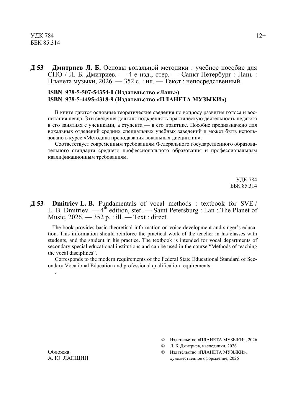 В книге даются основные теоретические сведения по вопросу развития голоса и воспитания певца. Эти сведения должны подкреплять практическую деятельность педагога в его занятиях с учениками, а студента — в его практике. Пособие предназначено для вокальных отделений средних специальных учебных заведений и может быть использовано в курсе "Методика преподавания вокальных дисциплин". The book provides basic theoretical information on voice development and singer’s education. This information should reinforce the practical work of the teacher in his classes with students, and the student in his practice. The manual is intended for vocal departments of secondary special educational institutions and can be used in the course "Methods of vocal disciplines teaching".