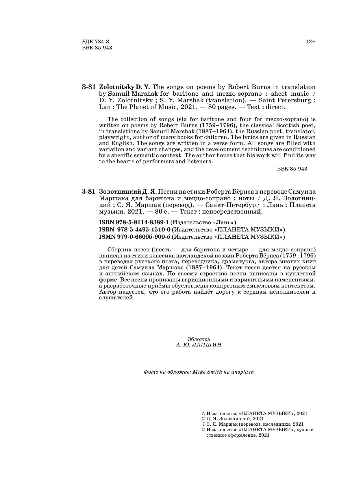 Песни на стихи Роберта Бёрнса в переводе Самуила Маршака для баритона и меццо-сопрано