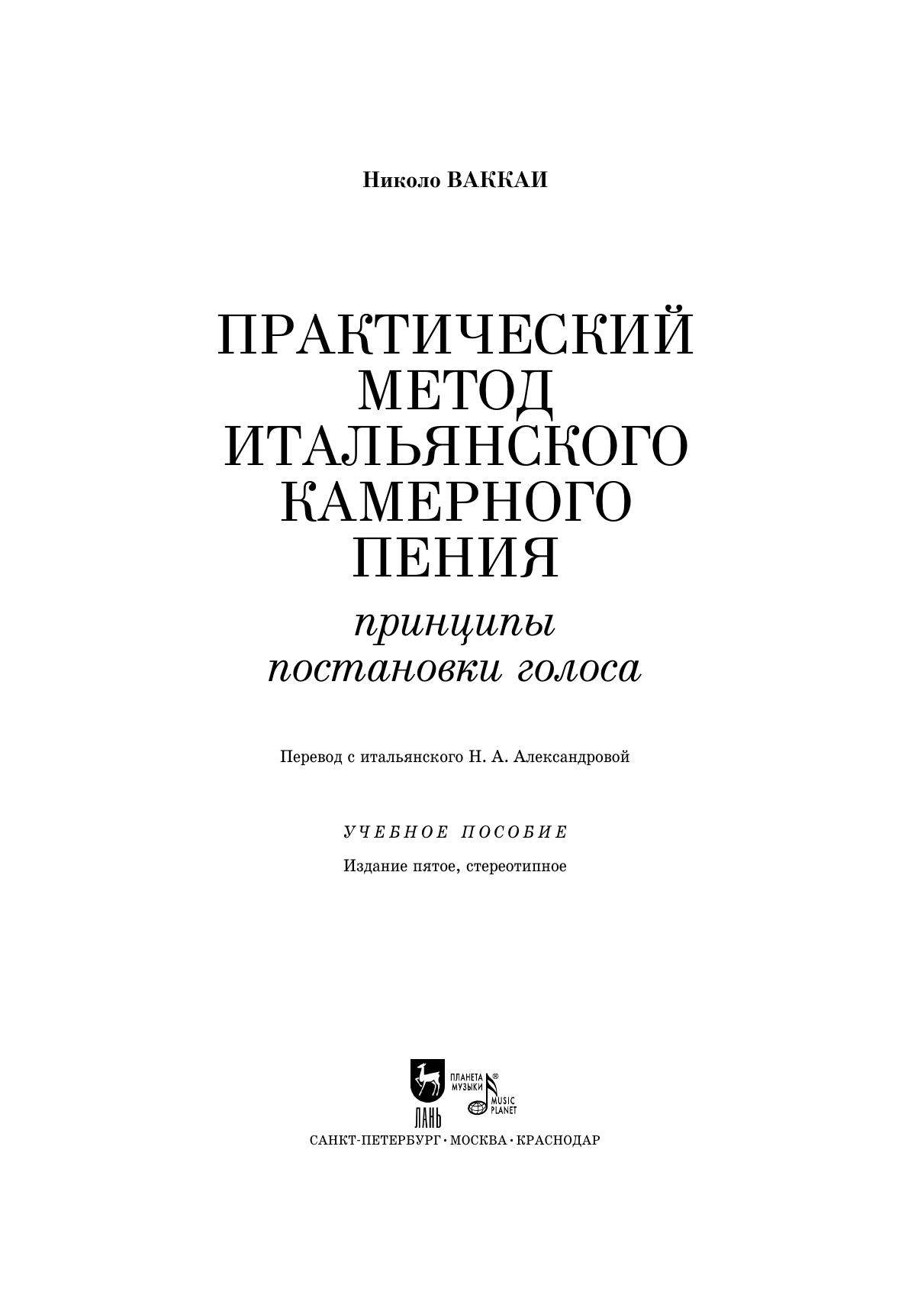 Практический метод итальянского камерного пения. Принципы постановки голоса