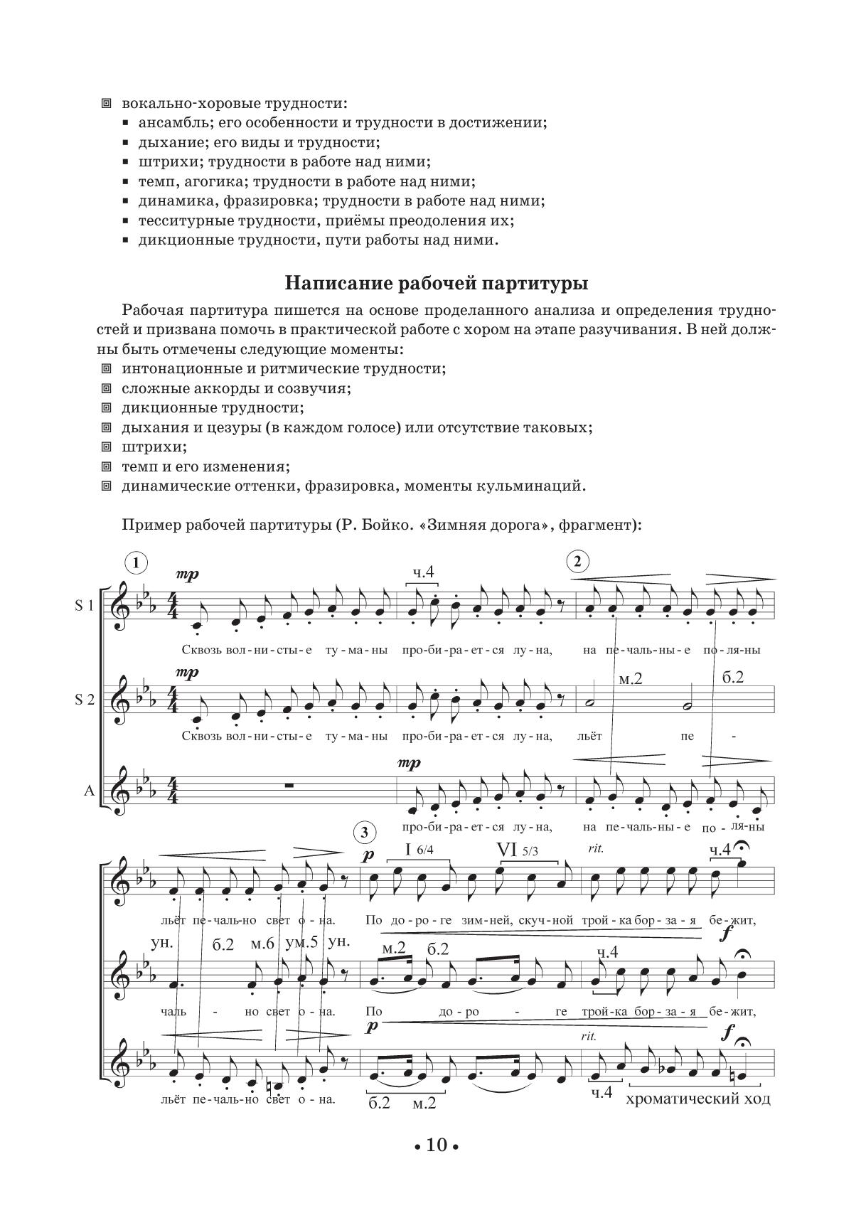 В учебном пособии рассматривается весь процесс работы хормейстера над партитурой, а также содержатся материалы, позволяющие глубже изучить и практически освоить основные приемы и методы, необходимые в работе с хоровым коллективом. В качестве примера хормейстерского анализа представлен разбор партитуры Р. Бойко «Зимняя дорога». В нотном приложении представлены примеры партитур различной степени трудности для разучивания в процессе обучения и на экзамене по дирижированию хором, а также список произведений, рекомендуемый для разучивания.
