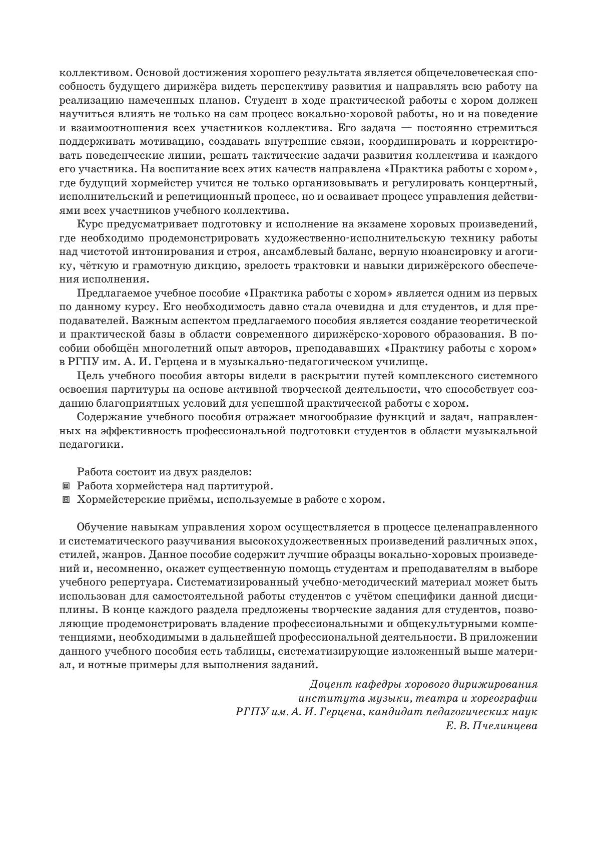 Учебное пособие предназначено для студентов музыкальных факультетов педагогических вузов и призвано помочь им достигнуть уровня, необходимого для успешной работы с хором в курсе предмета «Практика работы с хором». Кроме того, учебное пособие могут использовать студенты, занимавшиеся дирижированием ранее, чтобы повысить уровень своей хормейстерской подготовки, пополнить и систематизировать имеющиеся знания и навыки.