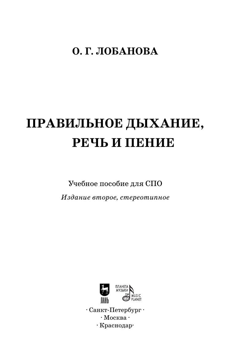 The author considers breathing during singing and speaking, including scenic speech, and offers advice for singers and speakers. In the textbook there is also the system of respiratory exercises, which consists of four sets and has the aim to develop correct breathing.