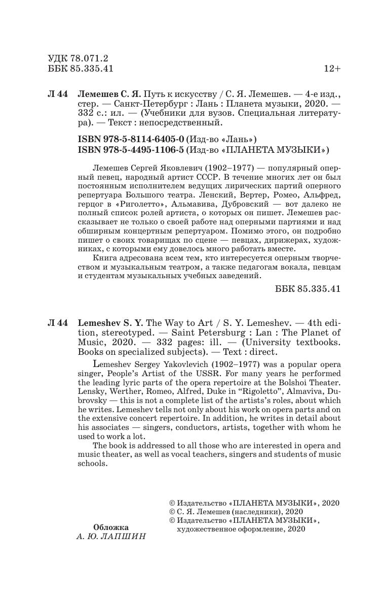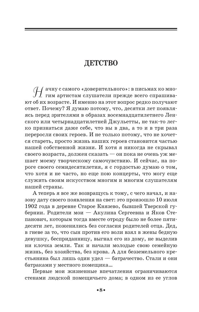 репертуара Большого театра. Ленский, Вертер, Ромео, Альфред, герцог в «Риголетто», Альмавива, Дубровский — вот далеко не полный список ролей артиста, о которых он пишет. Лемешев рассказывает не только о своей работе над оперными партиями и над обширным концертным репертуаром. Помимо этого, он подробно пишет о своих товарищах по сцене — певцах, дирижерах, художниках, с которыми ему довелось много работать вместе.