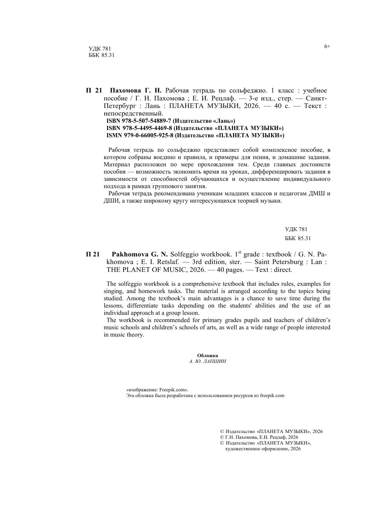 Авторы: Пахомова Г. Н., Рецлаф Е. И.