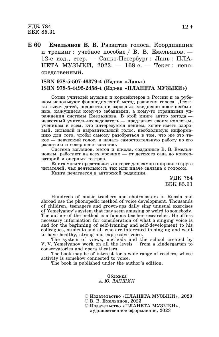 Сотни учителей музыки и хормейстеров в России и за рубежом используют фонопедический метод развития голоса. Десятки тысяч детей, подростков и взрослых ежедневно поют необычные, кажущиеся кому-то забавными, а кому-то странными упражнения системы Емельянова. В этой книге автор метода — известный учитель-исследователь предлагает своим коллегам, ученикам и всем, кто интересуется пением, хочет иметь здоровый, сильный и выразительный голос, — необходимую информацию, для того чтобы самому разобраться в том, что же это такое — певческий голос и начать самостоятельную работу по его развитию и совершенствованию.