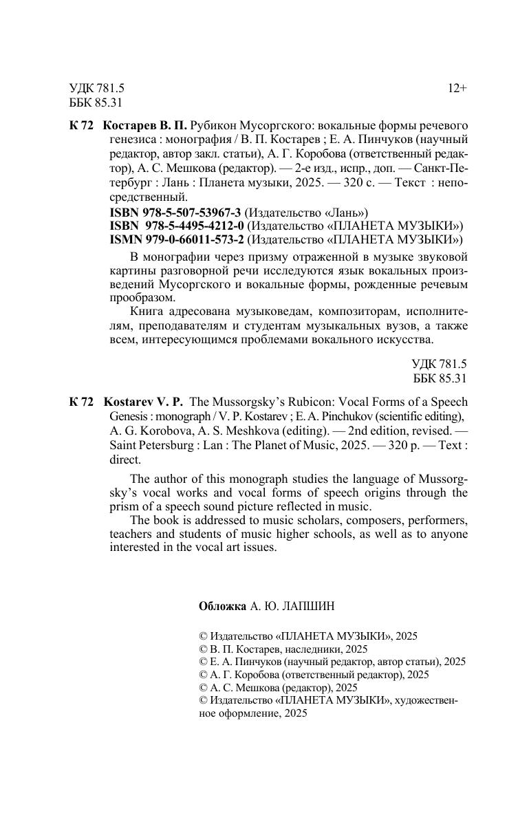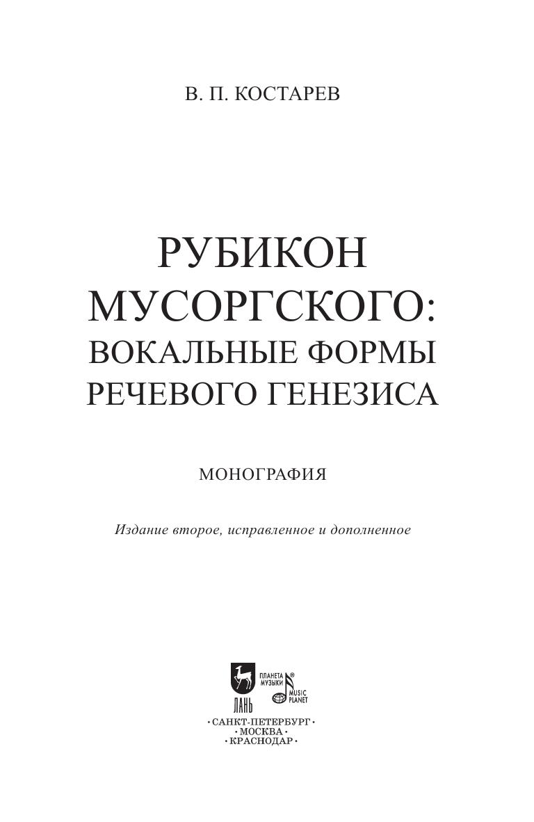 В монографии через призму отраженной в музыке звуковой картины разговорной речи исследуются язык вокальных произведений Мусоргского и вокальные формы, рожденные речевым прообразом. Книга адресована музыковедам, композиторам, исполнителям, преподавателям и студентам музыкальных вузов, а также всем, интересующимся проблемами вокального искусства. The author of this monograph studies the language of Mussorgsky’s vocal works and vocal forms of speech origins through the prism of a speech sound picture reflected in music. The book is addressed to music scholars, composers, performers, teachers and students of music higher schools, as well as to anyone interested in the vocal art issues.