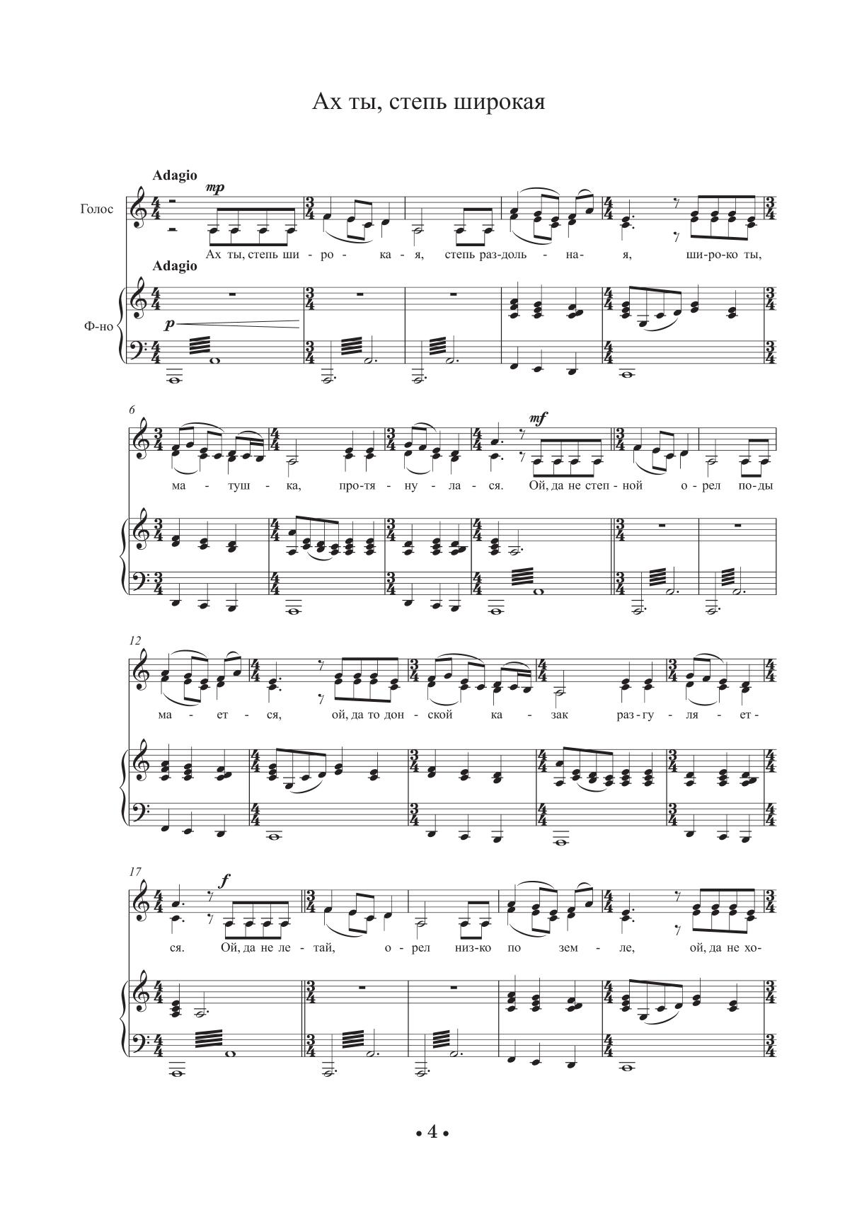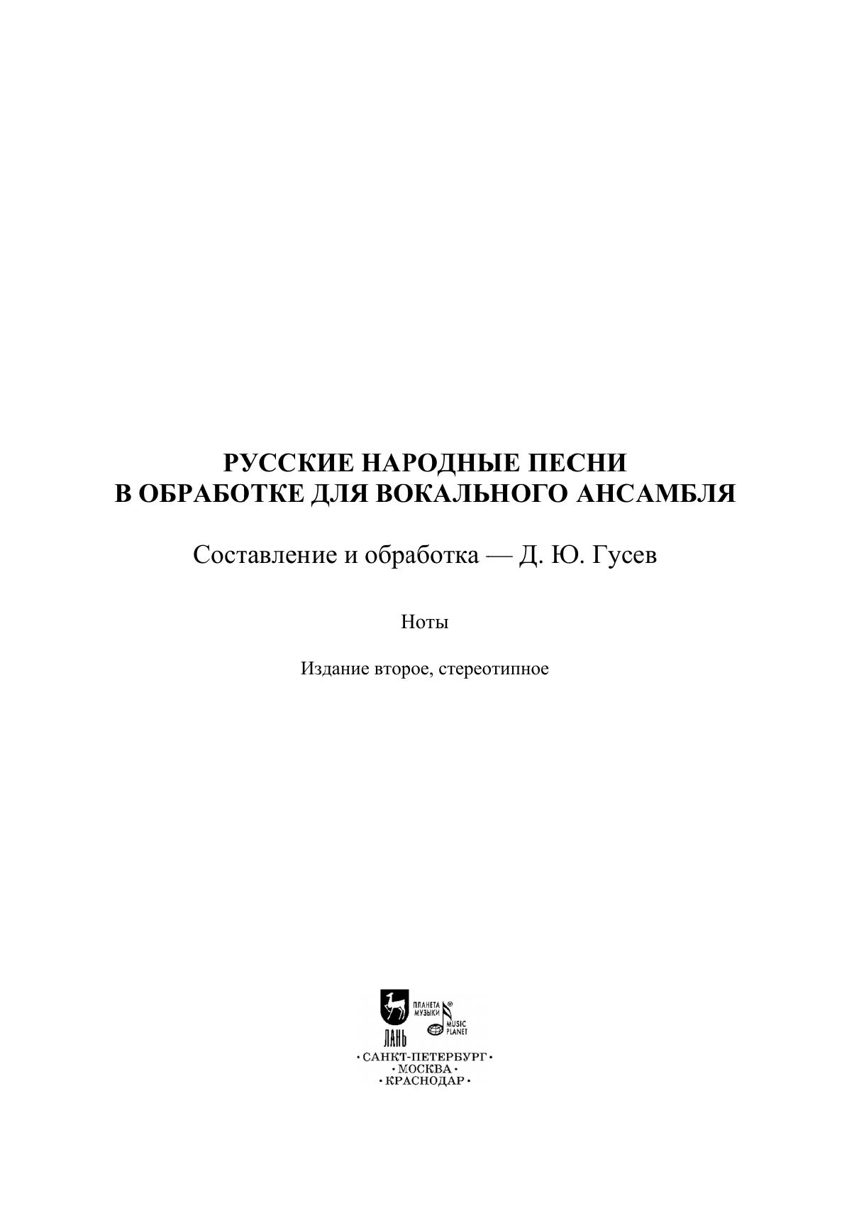 Обработка русской народной песни для вокального ансамбля и фортепиано открывает новые исполнительские возможности, позволяет обогатить репертуар акаждемического и эстрадного коллектива. В издание вошли аранжировки таких песен, как «Ах ты, степь широкая», «Ах, вы, сени мои, сени», «Валенки», «Вдоль по Питерской», «Во кузнице», «Ой, мороз, мороз», «Ой, то не вечер» и многих других. Сборник адресован начинающим певцам, профессиональным вокалистам и широкому кругу любителей музыки. Arrangments of Russian folk songs for a vocal ensemble and piano gives new performing possibilities and a chance to enrich the repertoire of academic and pop groups. The edition includes arrangements of such songs as “Oh, you, the wide steppe,” “Oh, you, my canopy, canopy”, “The felt boots”, “Along the Piterskaya street”, “In the forge”, “Oh you, frost, frost” “Oh, it’s not an evening” and many more. The collection is addressed to beginning singers, professional vocalists and a wide range of music lovers.