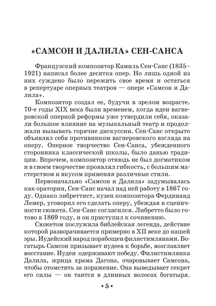 «Самсон и Далила» (фр. Samson et Dalila) — Опера в трех действиях Камиля Сен-Санса на либретто Фердинанда Лемера, основанное на библейской легенде. Опера представляет собой не драматически-конфликтное действие как в библейском сказании, а скорее ряд красочных картин, где удача более сопутствовала композитору в изображении изнеженности филистимлян и обольщений Далилы, нежели суровости иудеев и героики Самсона. Именно образ коварной соблазнительницы и ее окружения стал центральным в опере.