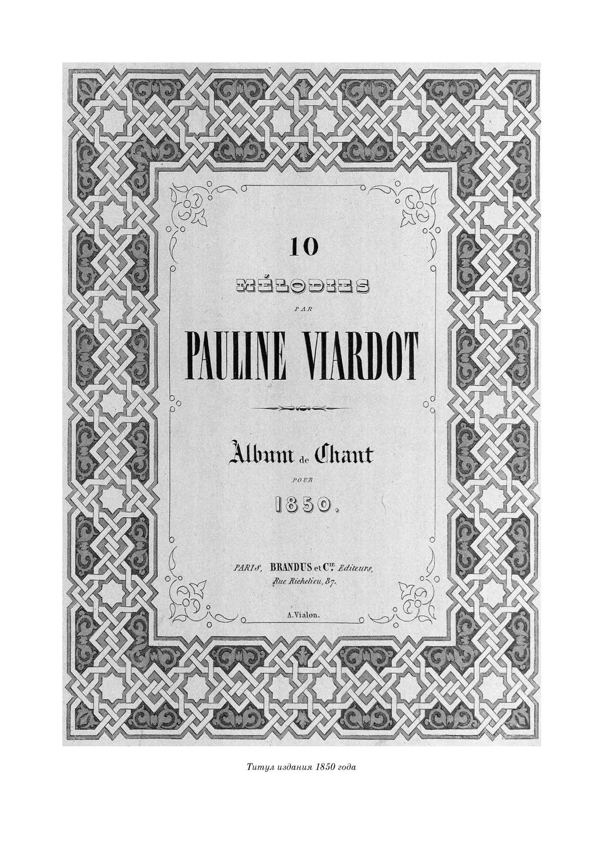 Полина Виардо (1821–1910) – испано-французская певица (меццо-сопрано), вокальный педагог, композитор, автор нескольких сборников романсов и комических опер.