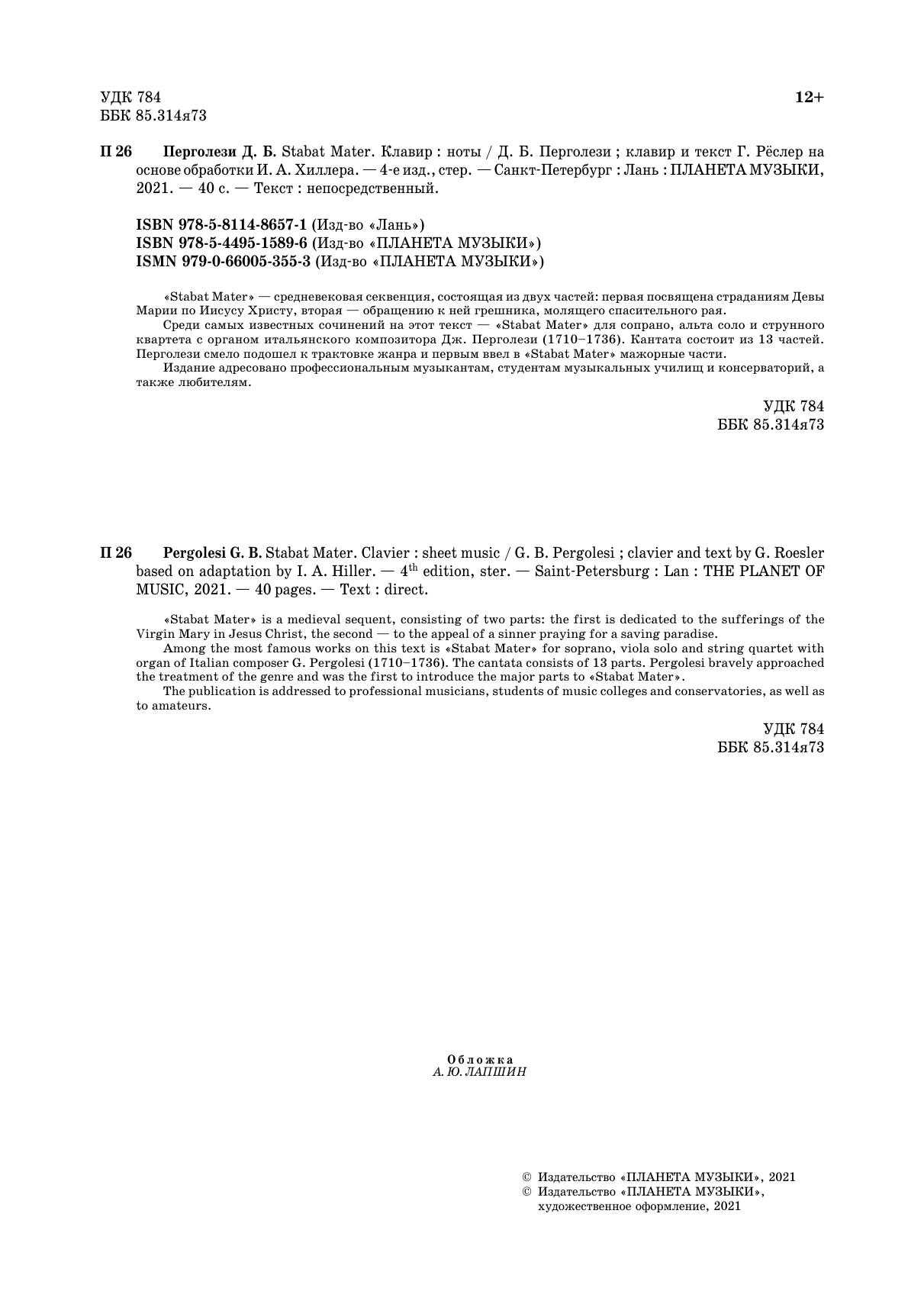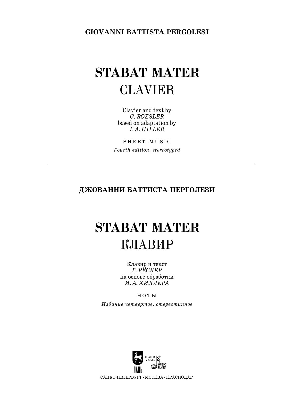 Stabat Mater. Клавир. Stabat Mater, Clavier