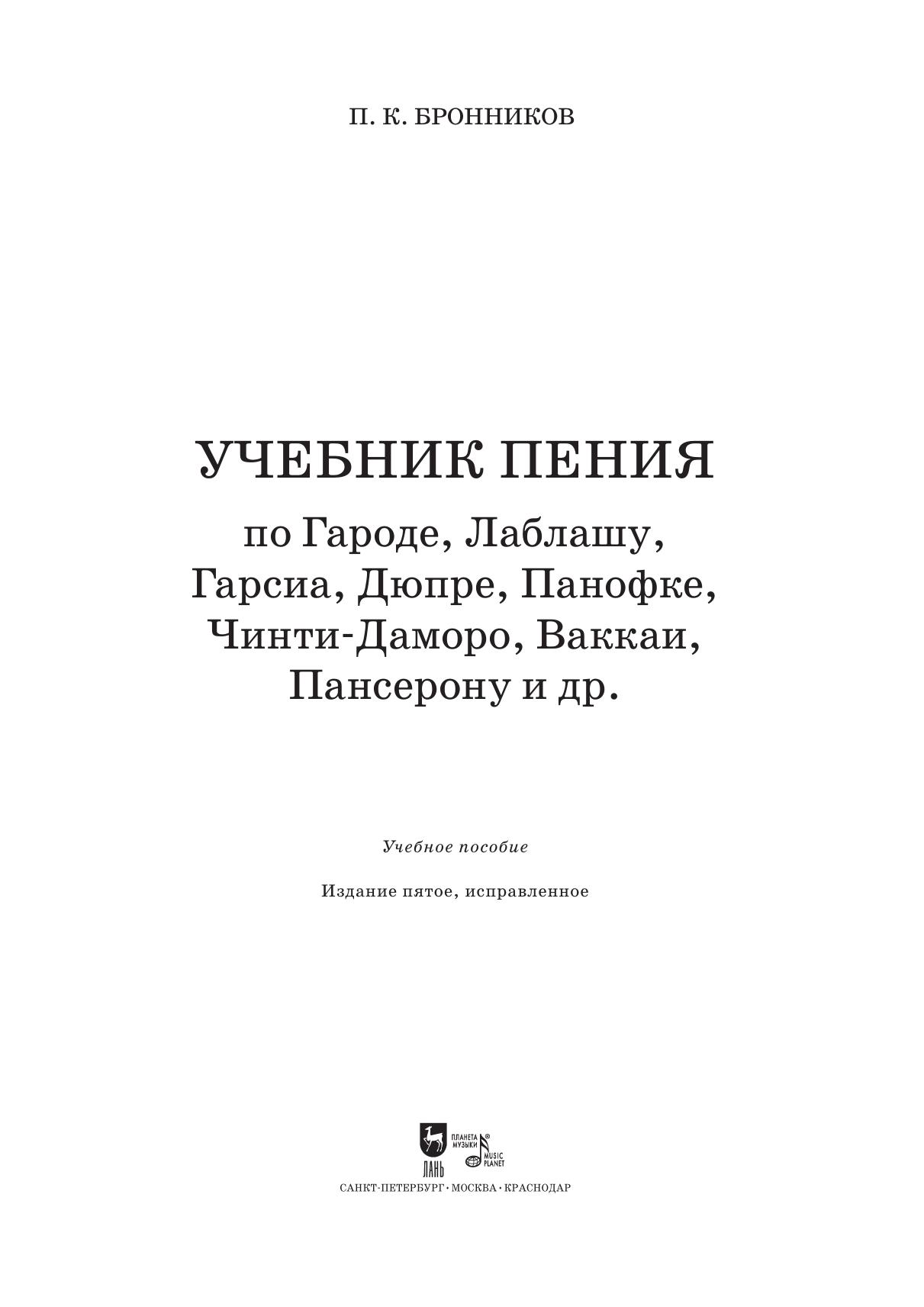 Учебник пения по Гароде, Лаблашу, Гарсиa, Дюпре, Панофке, Чинти-Даморо, Ваккаи, Пансерону и др.