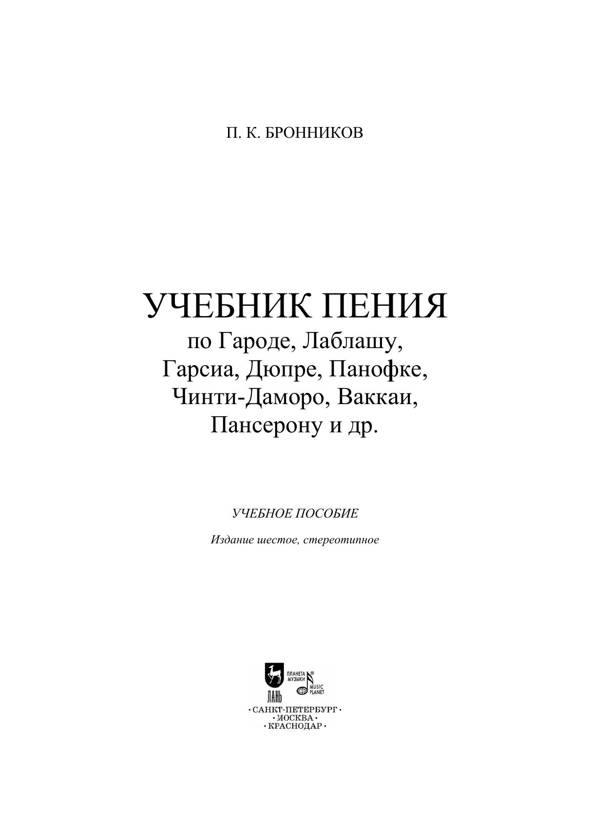 Учебник пения по Гароде, Лаблашу, Гарсиa, Дюпре, Панофке, Чинти-Даморо, Ваккаи, Пансерону и др