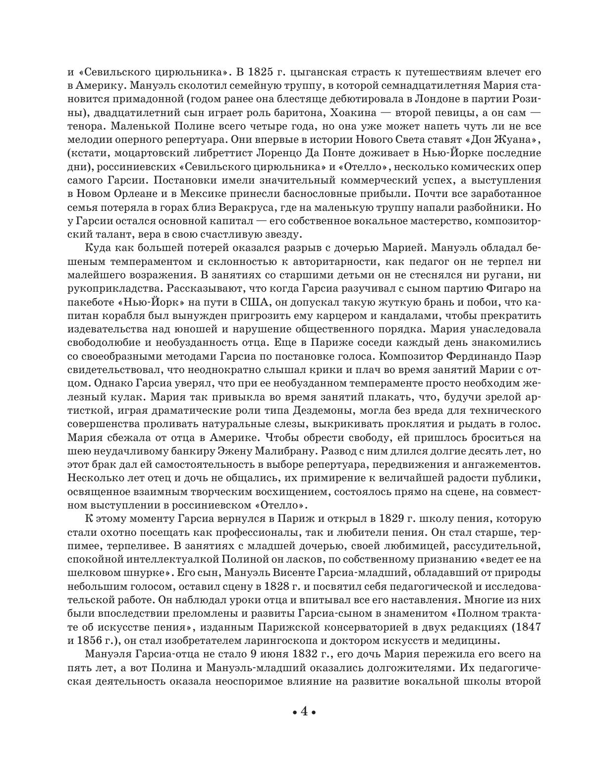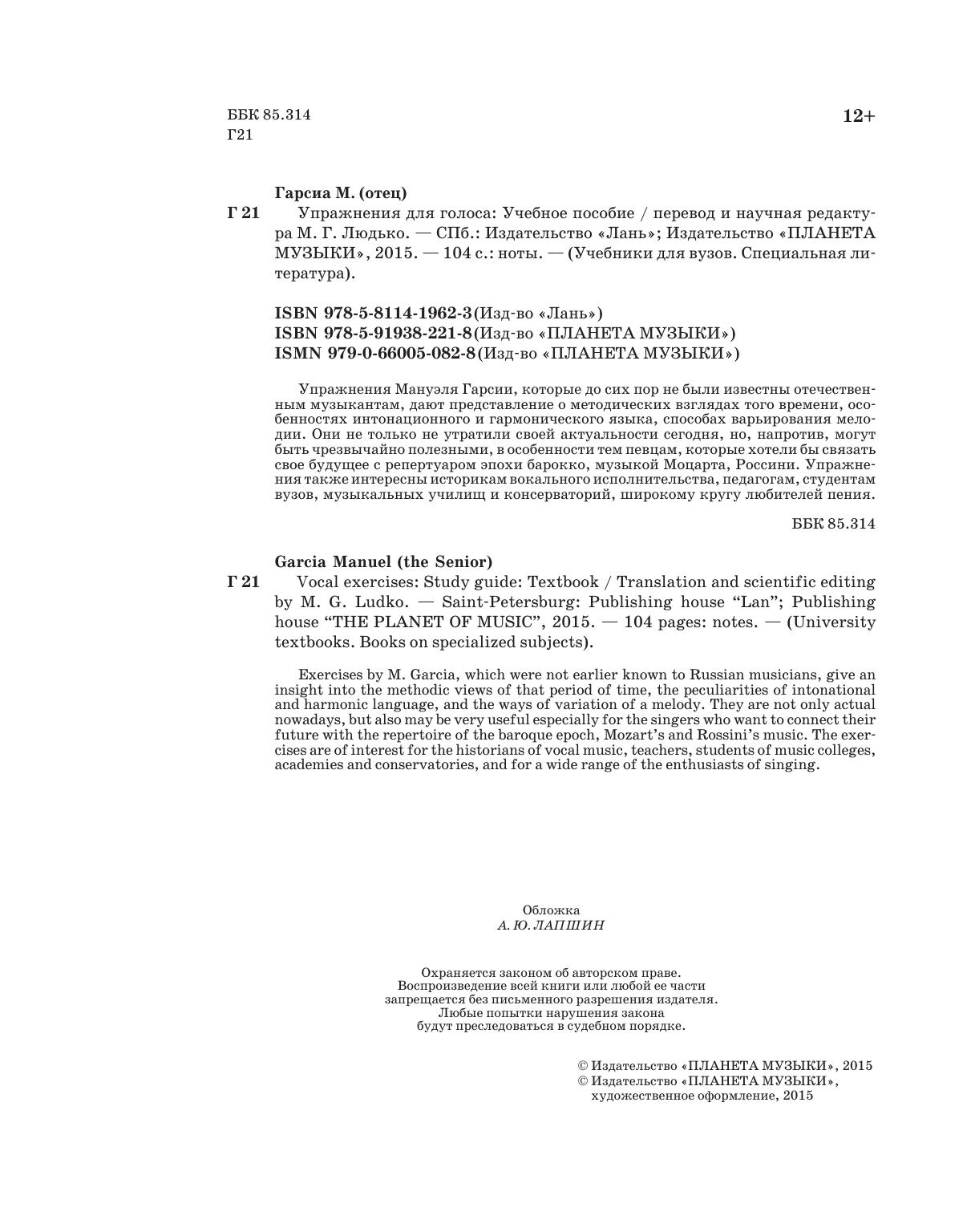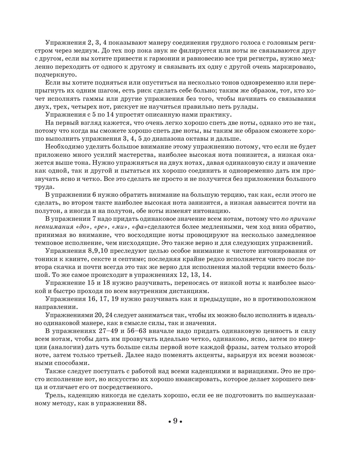 Упражнения М. Гарсии, которые до сих пор не были известны отечественным музыкантам, дают представление о методических взглядах того времени, особенностях интонационного и гармонического языка, способах варьирования мелодии. Они не только не утратили своей актуальности сегодня, но, напротив, могут быть чрезвычайно полезными, в особенности тем певцам, которые хотели бы связать свое будущее с репертуаром эпохи барокко, музыкой Моцарта, Россини. Упражнения также интересны историкам вокального исполнительства, педагогам, студентам вузов, музыкальных училищ и консерваторий, широкому кругу любителей пения.