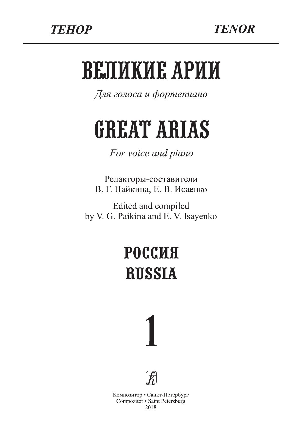 Великие русские арии. Для голоса и фортепиано. Тенор. Выпуск 1