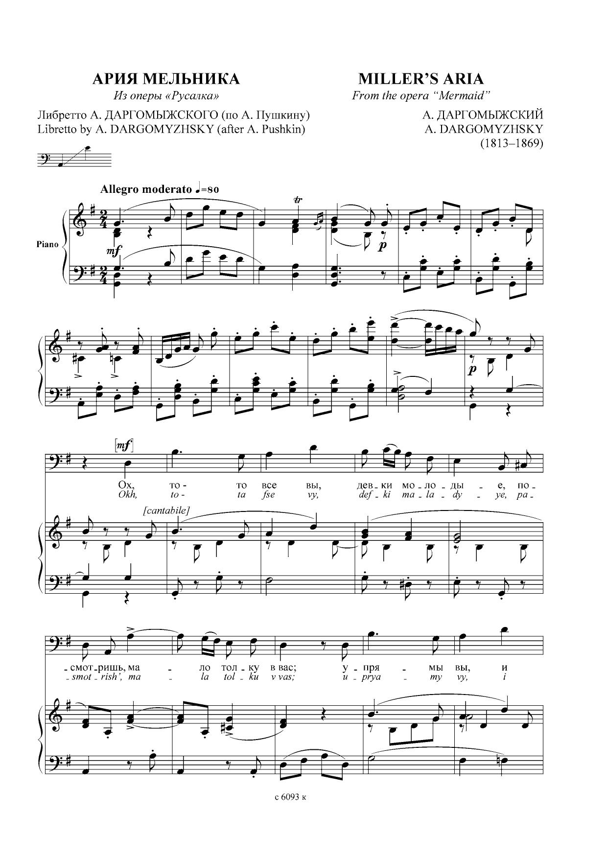 А. Даргомыжский. АРИЯ МЕЛЬНИКА. Из оперы «Русалка