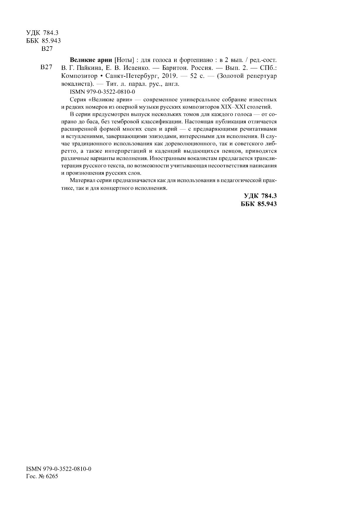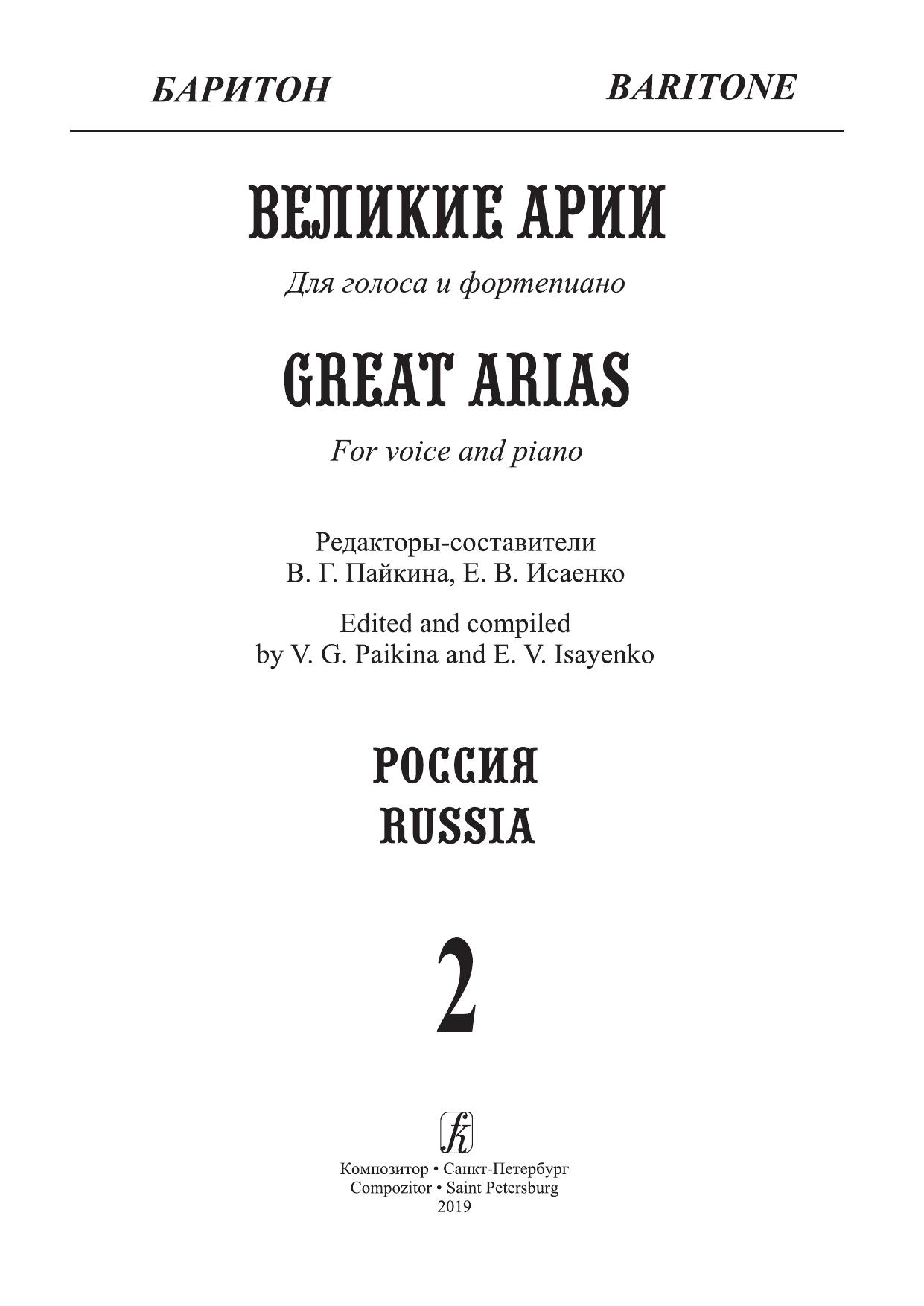 Великие русские арии. Для голоса и фортепиано. Баритон. Выпуск 2