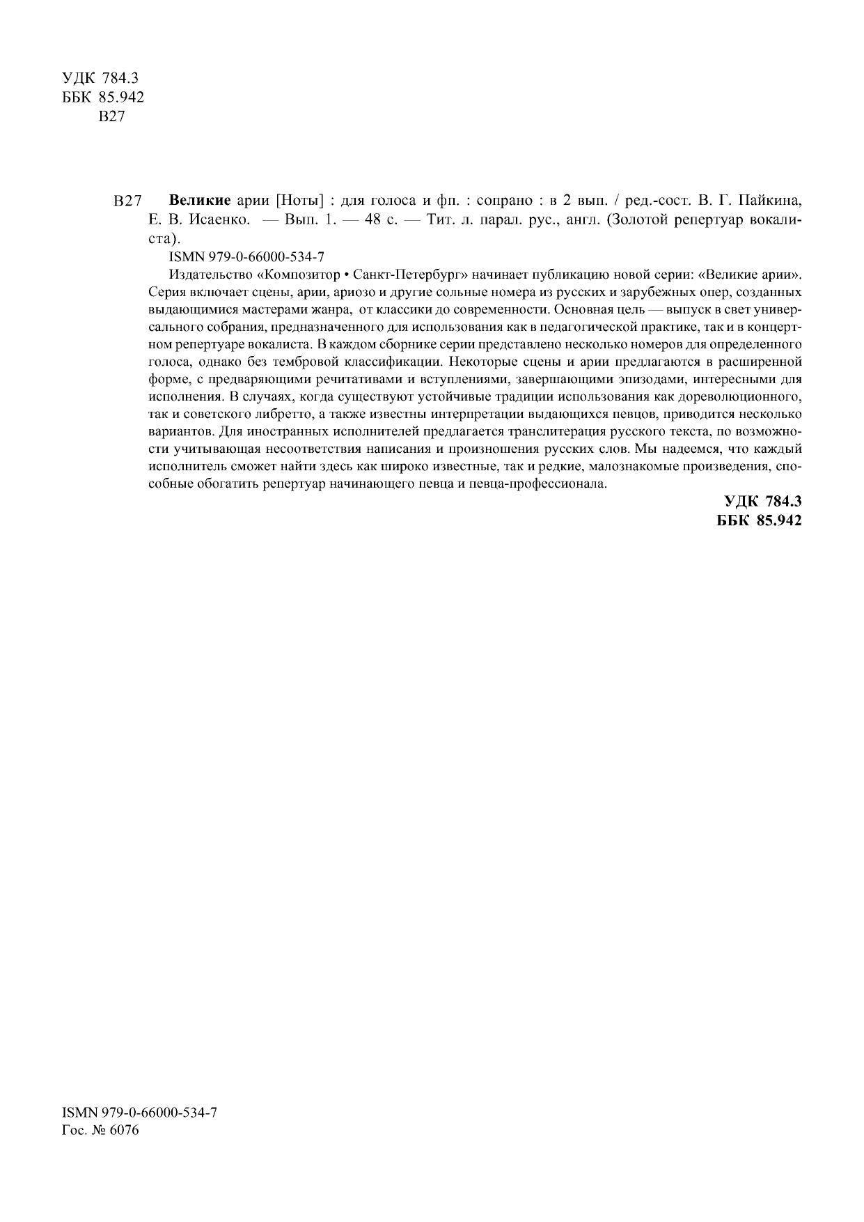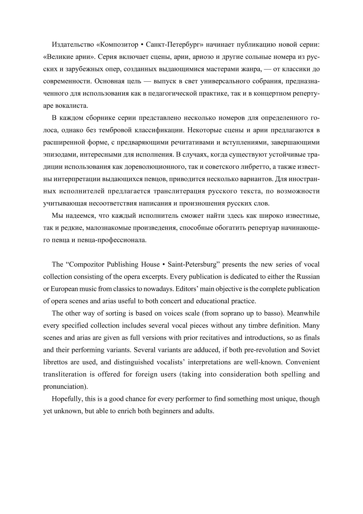Мы надеемся, что каждый исполнитель сможет найти здесь как широко известные, так и редкие, малознакомые произведения, способные обогатить репертуар начинающего певца и певца-профессионала.