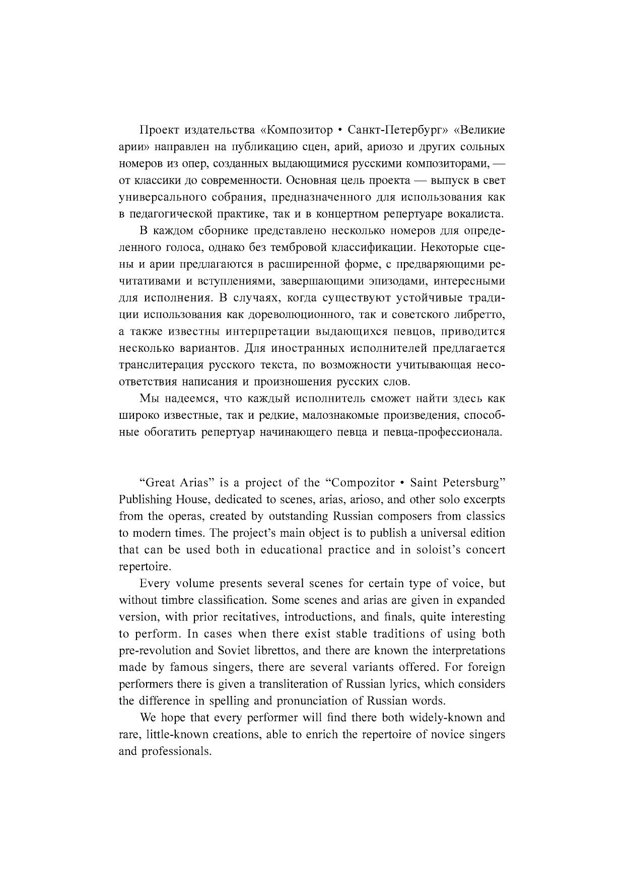 Серия «Великие арии» — современное универсальное собрание известных и редких номеров из оперной музыки русских композиторов XIX–XXI столетий.