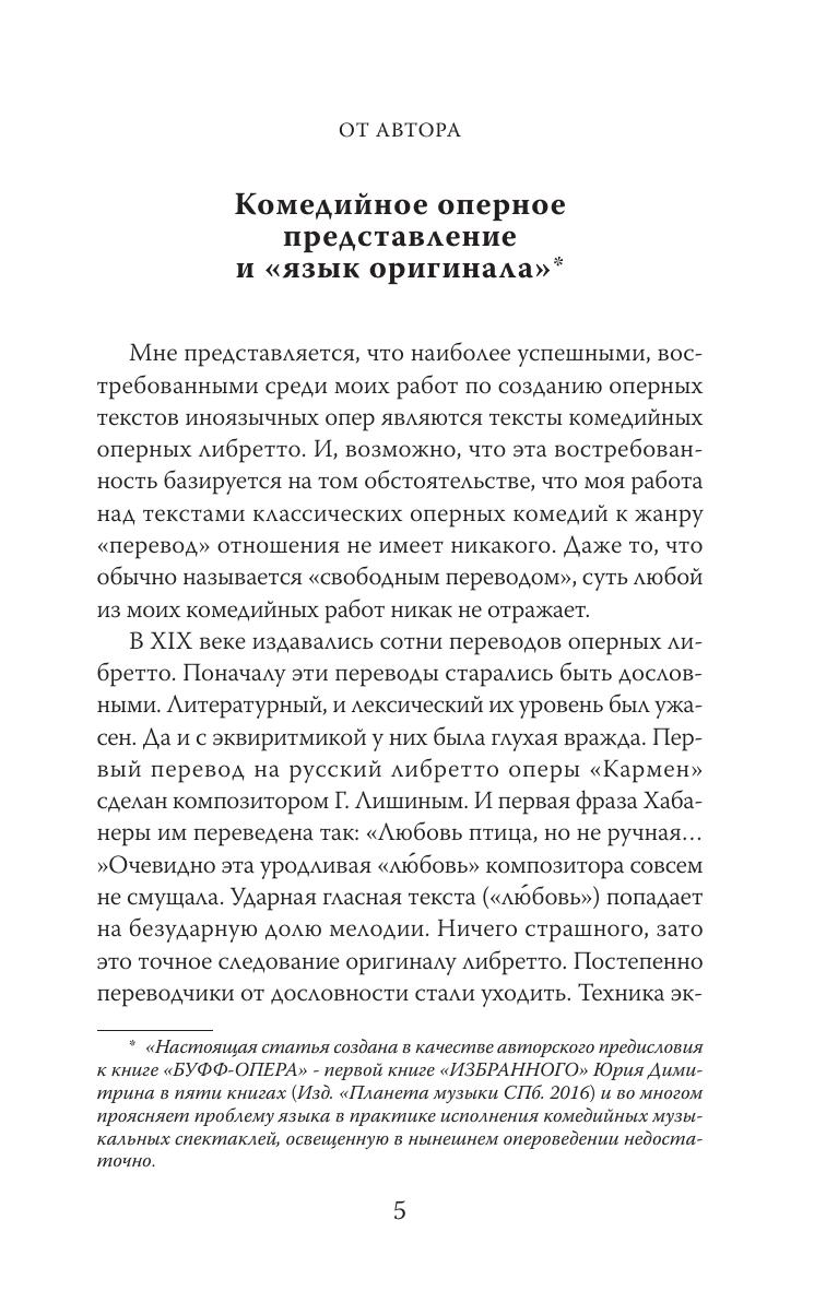 Книга предлагает читателю полные тексты пьес (либретто) для музыкального театра драматурга Юрия Димитрина. Среди них либретто опер, побывавших на сцене и еще ни разу не поставленных. Есть и либретто иноязвычных классических опер в русских версиях драматурга.