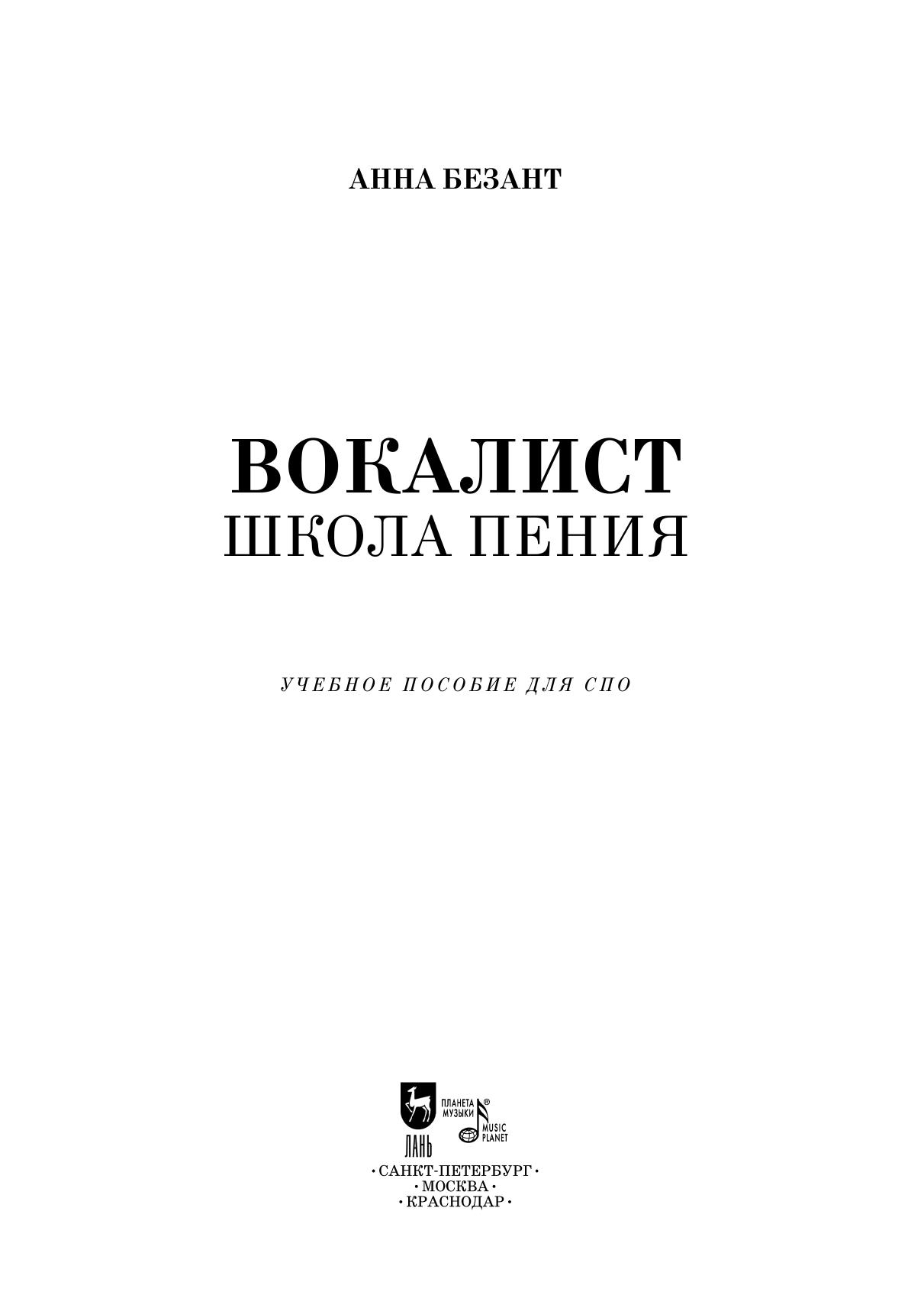 Настоящее руководство по обучению пению принадлежит видному русскому вокальному педагогу конца XIX века Анне Безант. Книга содержит методические указания и упражнения разного уровня сложности на все виды вокальной техники: гаммы, интервалы, связное пение, трели, синкопы, выдержанные ноты, украшения, арпеджио и др., а также отдельные ариозо, песни, речитативы. Специальный раздел посвящен обучению детей пению. Учебное пособие адресовано студентам средних специальных учебных заведений.