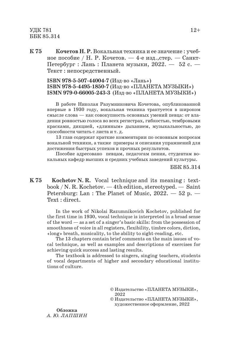 Пособие адресовано певцам, педагогам пения, студентам вокальных кафедр высших и средних учебных заведений культуры.