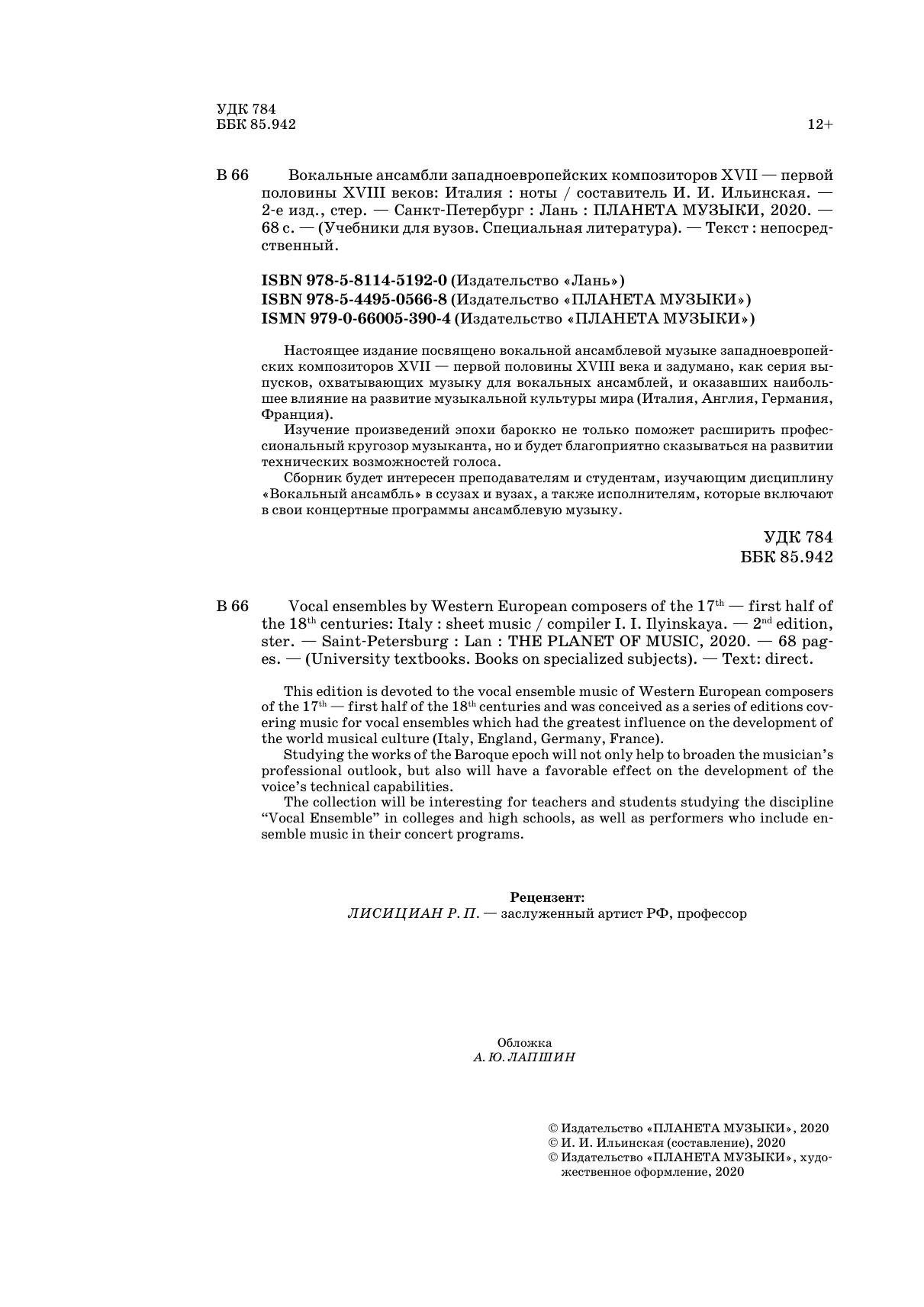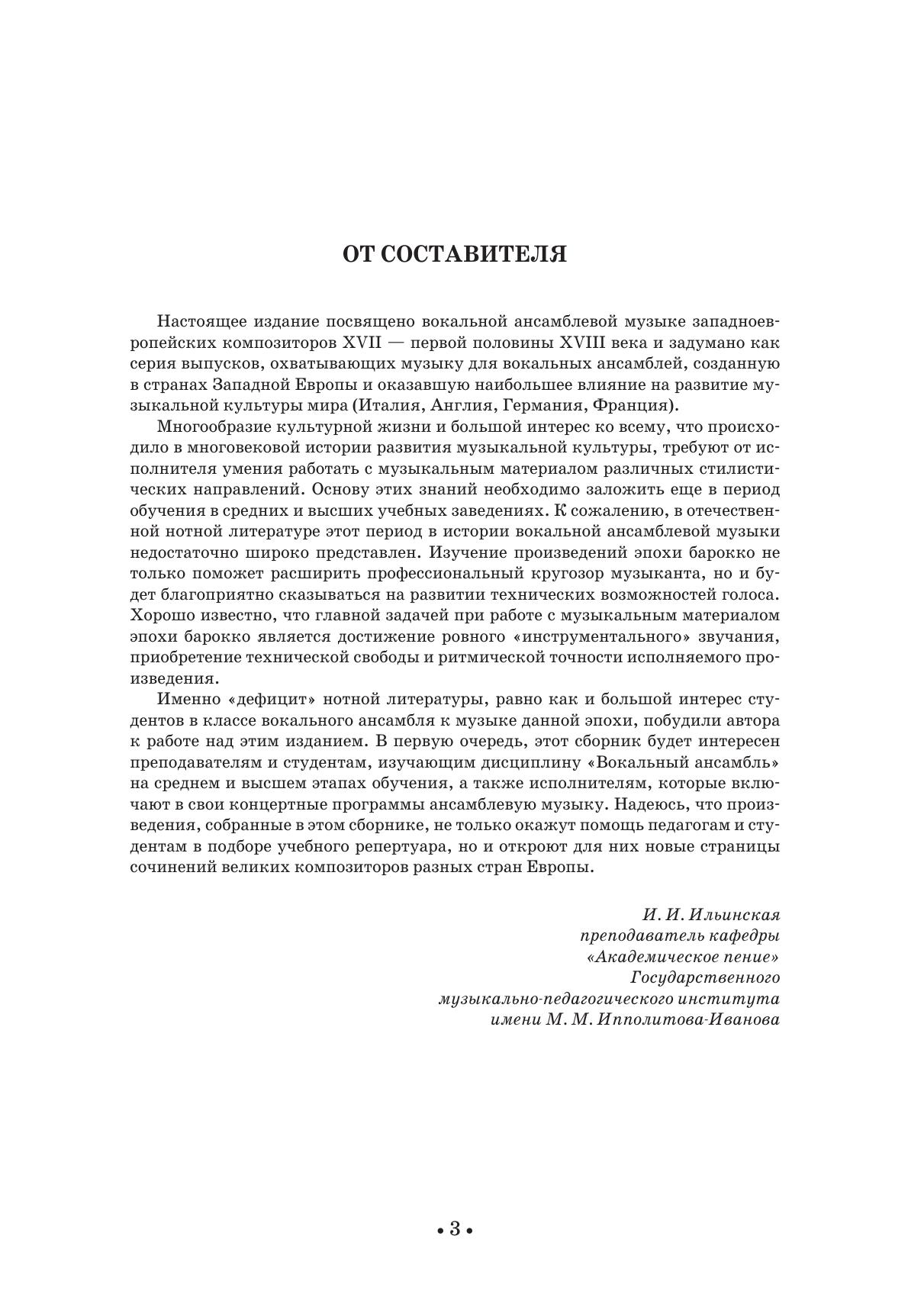 Настоящее издание посвящено вокальной ансамблевой музыке западноевропейских композиторов XVII – первой половины XVIII веков и задумано, как серия выпусков, охватывающих музыку для вокальных ансамблей, созданную в странах Западной Европы, оказавших наибольшее влияние на развитие музыкальной культуры мира (Италия, Англия, Германия, Франция).