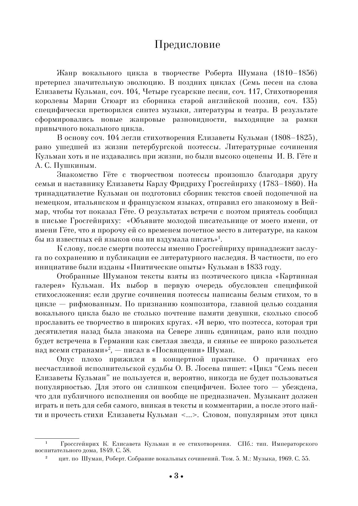 Жанр вокального цикла в творчестве Роберта Шумана (1810-1856) претерпел значительную эволюцию. В поздних циклах соч. 104, 117, 135 специфически претворился синтез музыки, литературы и театра. В результате сформировались новые жанровые разновидности, сочетающие черты вокального цикла и монооперы. Издание адресовано студентам вокальных факультетов, профессиональным исполнителям, любителям вокальной музыки. The genre of a vocal cycle in the work of Robert Schumann (1810–1856) underwent a significant evolution. The later cycles, op. 104, 117, 135 represent the specific synthesis of music, literature and theater. As a result, there appeared new kinds of this genre, combining the features of a vocal cycle and a mono-opera. The collection is addressed to students of vocal departments, professional performers, lovers of vocal music.